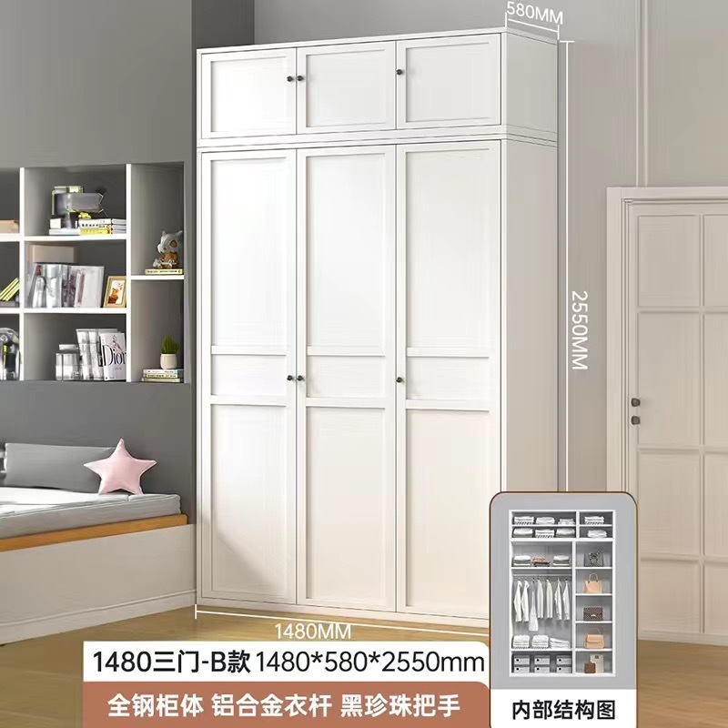 두꺼운 2025 새로운 철 옷장 홈 침실 현대 간단한 유럽 스타일의 금속 스토리지 스틸 옷장