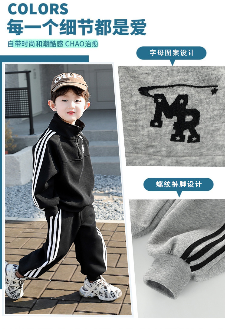• 아동용 삼선 스웨트셔츠 정장 그레이