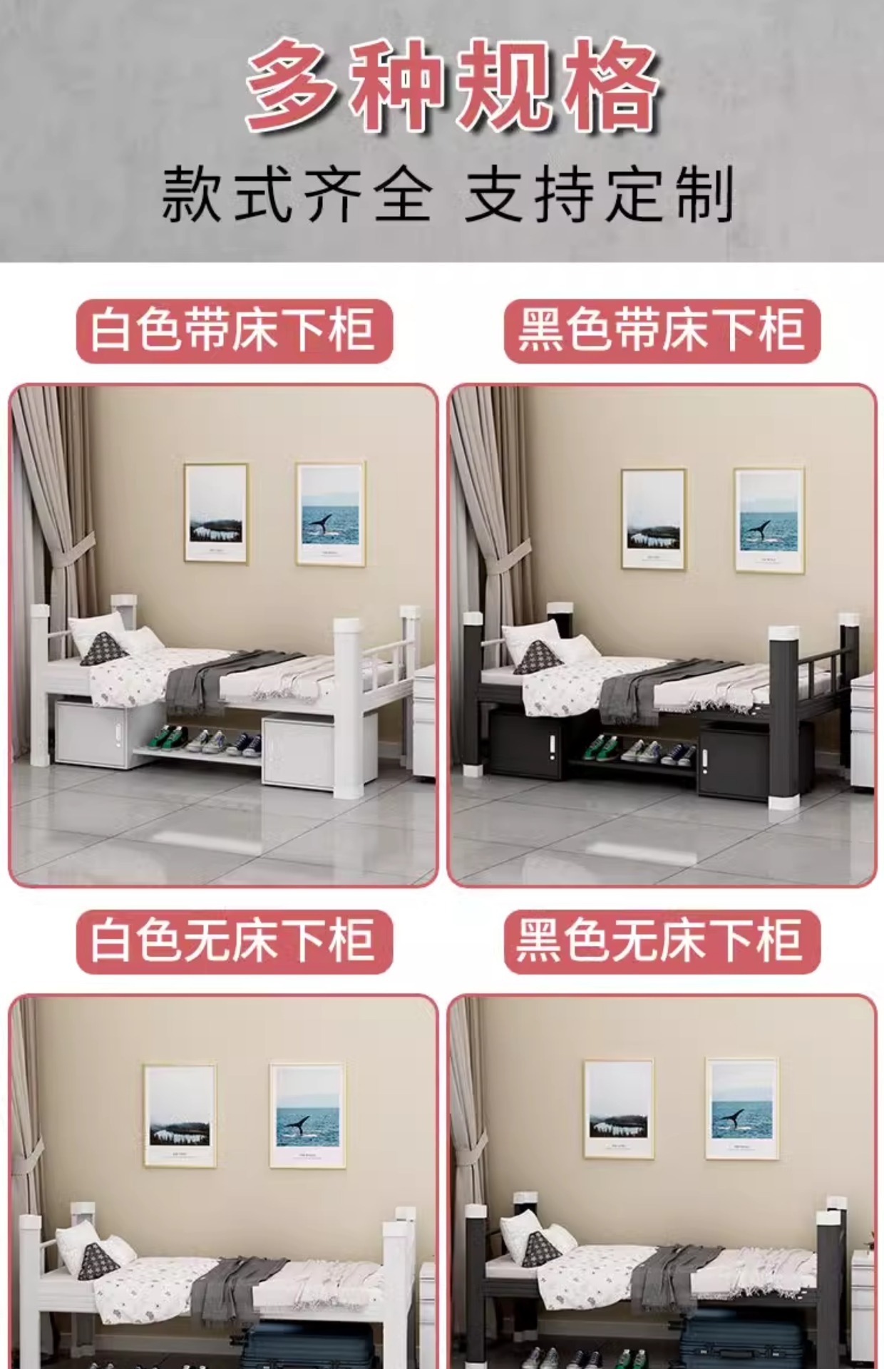 신형 싱글 침대 어린이용 철제 가정용 철제 프레임 침대 성인 직원 기숙사 아파트 침대 B&B 임대실 싱글스토어 가기