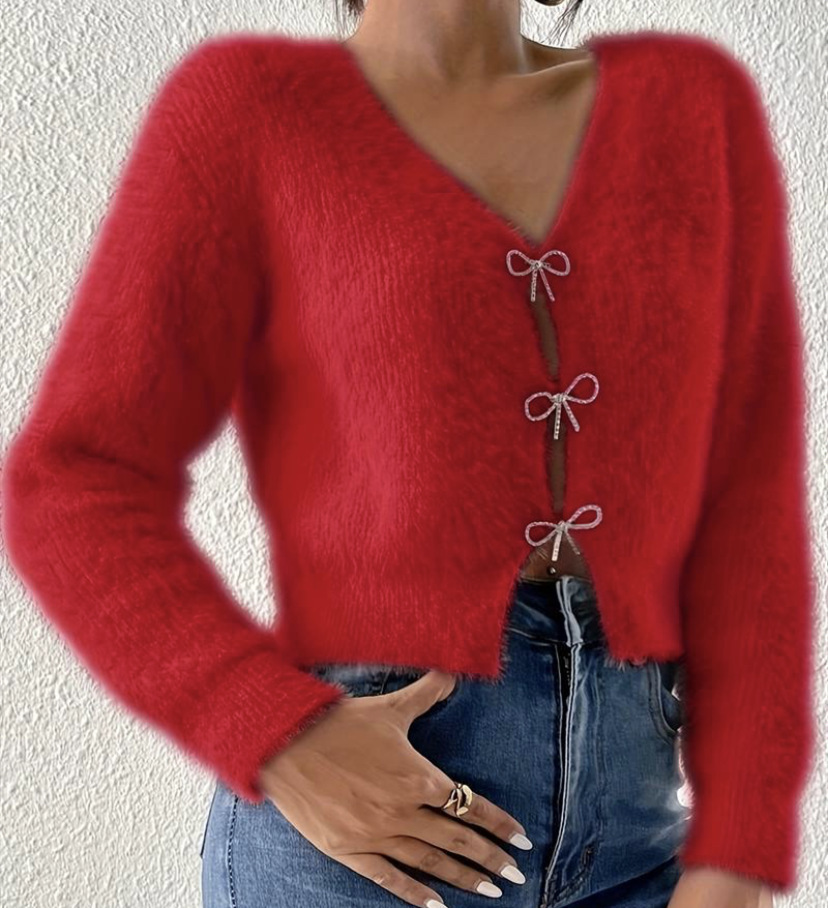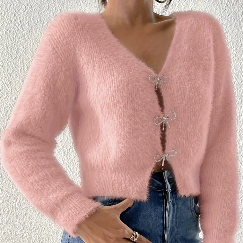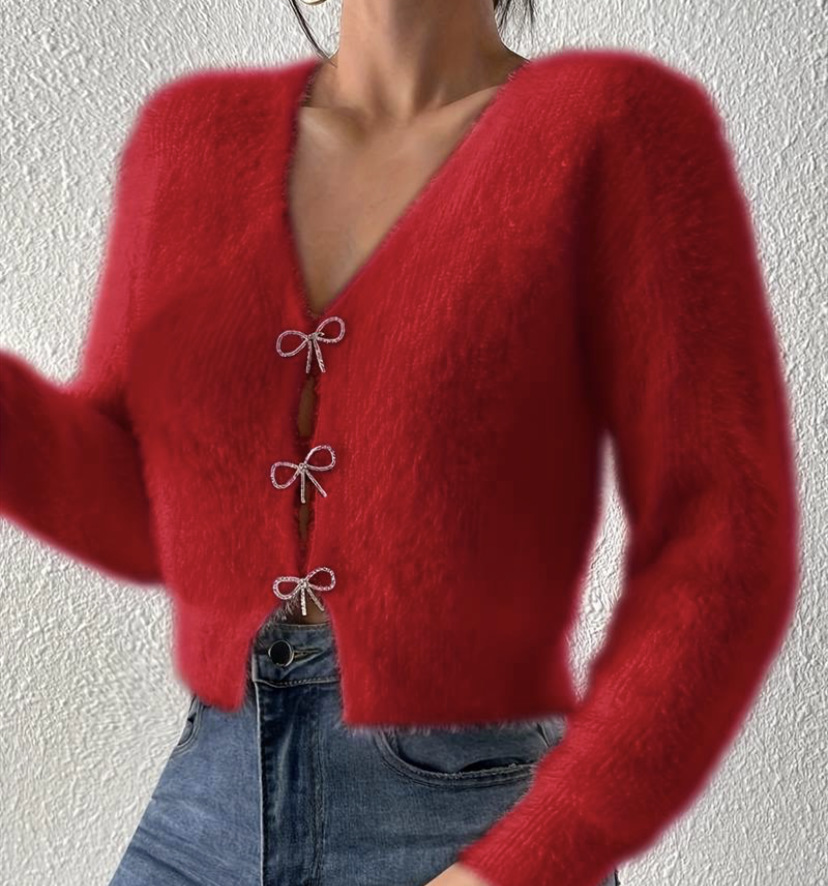 2025 겨울 두꺼운 새로운 느슨한 v 넥 틈새 디자인 스웨터 모조 밍크 벨벳 스웨터 자켓 여성용 카디건