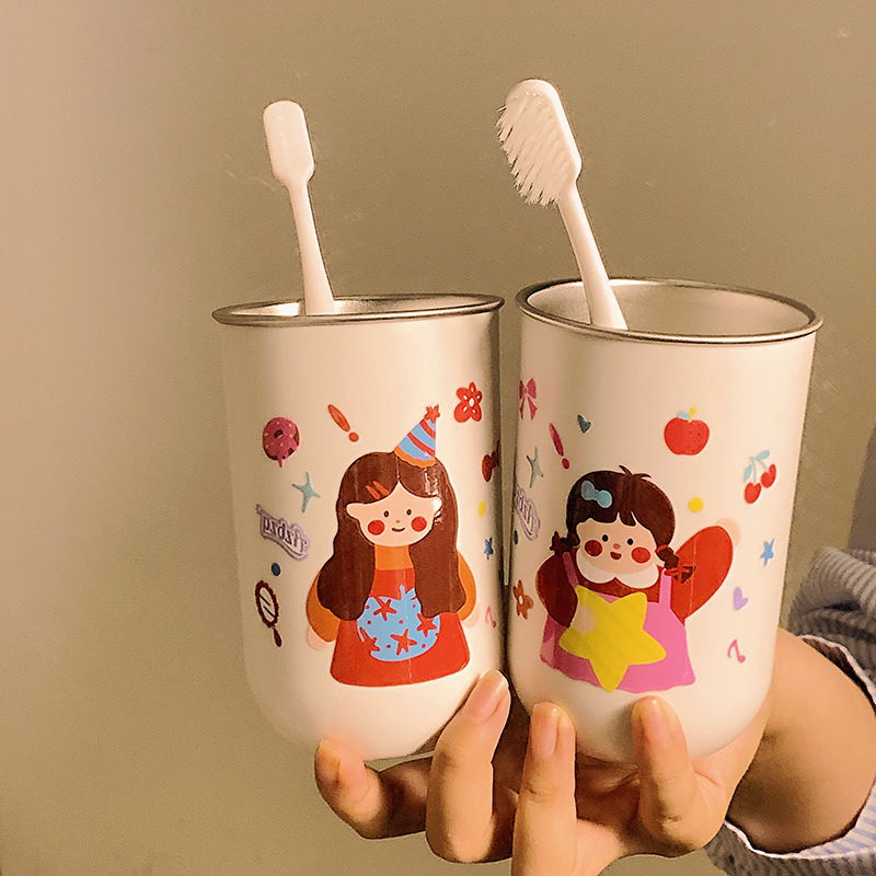 304 스테인레스 스틸 구강 세척제 컵, 부모-자식, 4인 가족, 귀여운 커플, 가정용 어린이 칫솔, 두꺼운스토어 가기