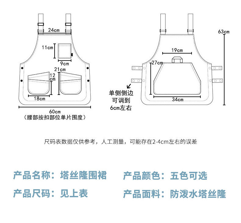 작업복 앞치마 이발사 커피숍 케이터링 조절 가능한 양면 남성 및 여성 작업복 로고