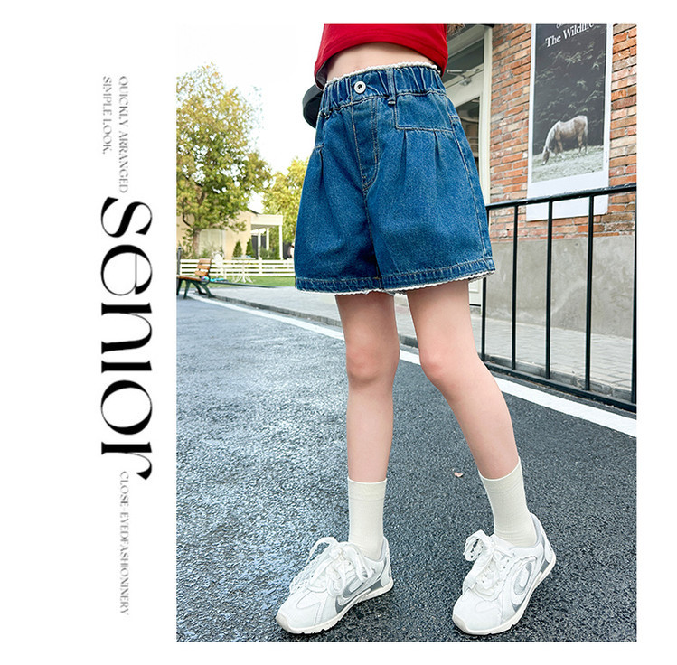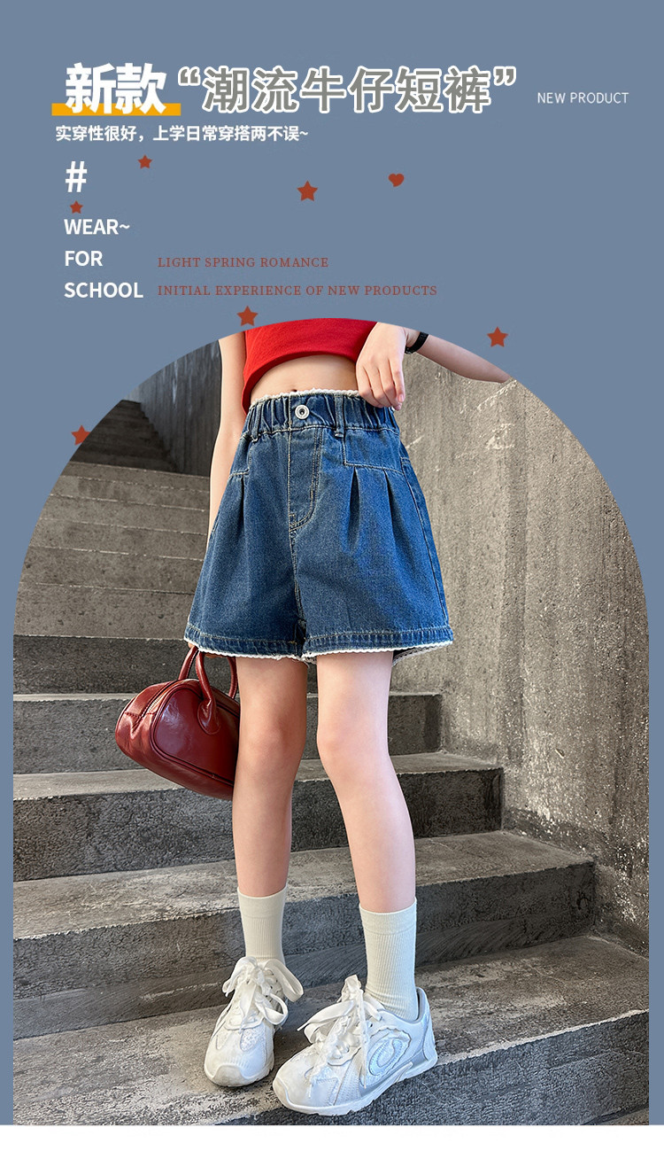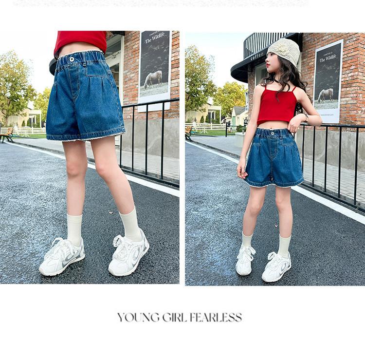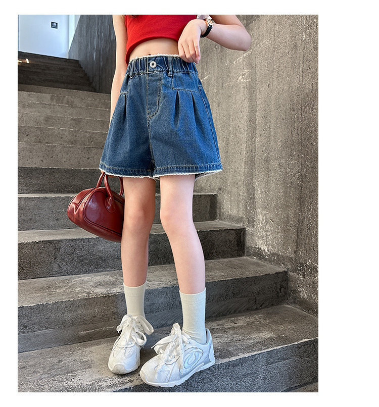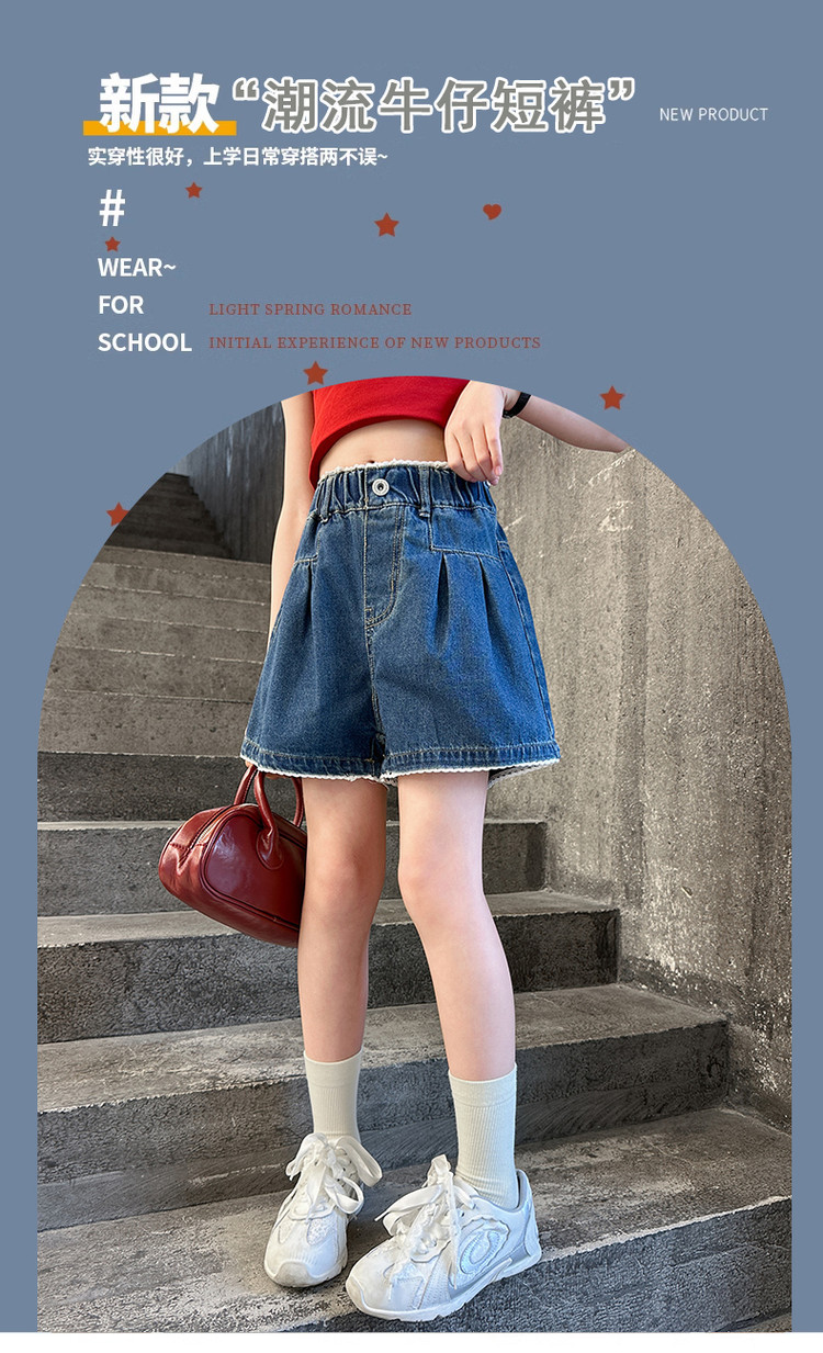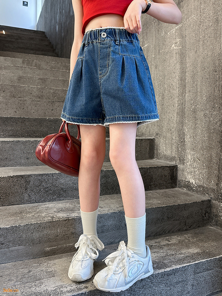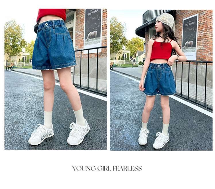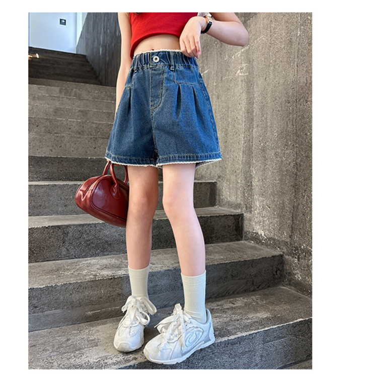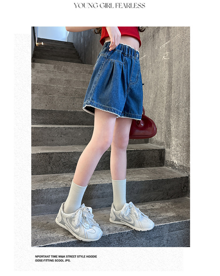 여자 여름 데님 반바지 2025 새로운 어린이 여름 바지 여자 큰 어린이 얇은 반바지 유행 핫 바지스토어 가기