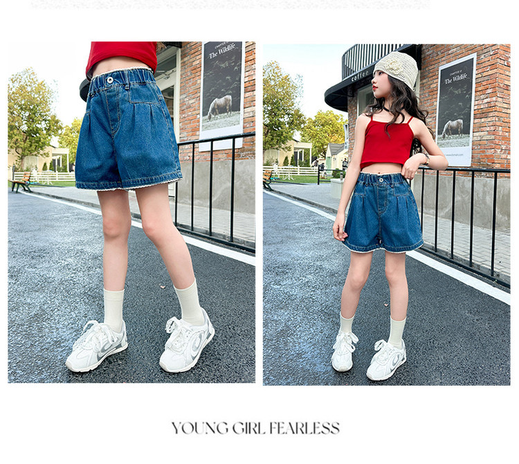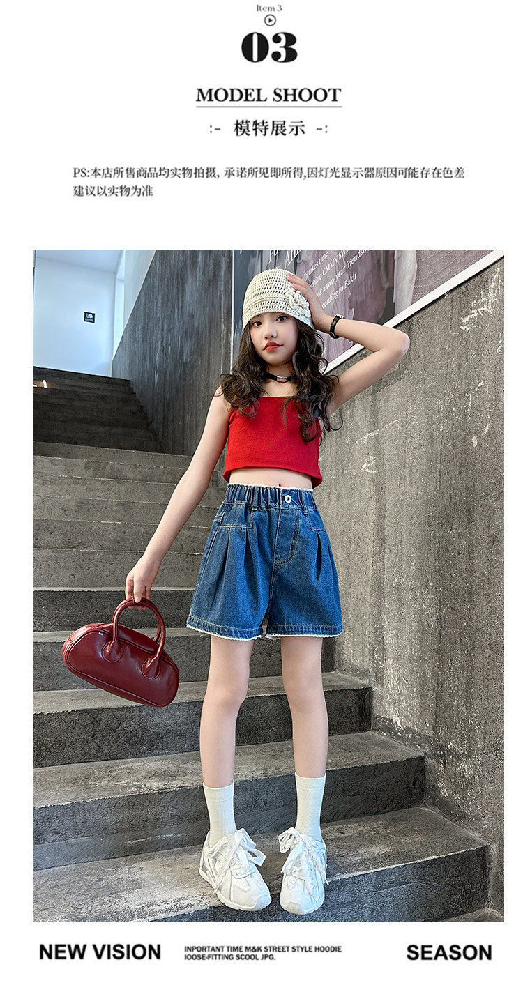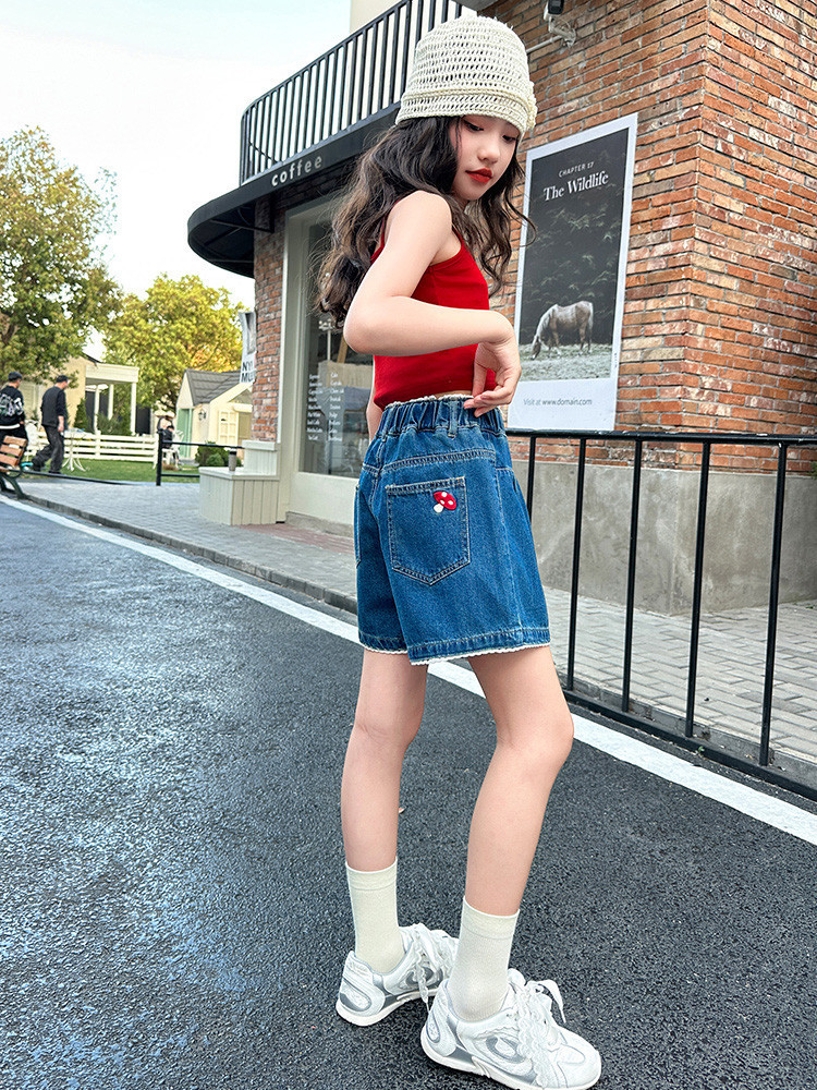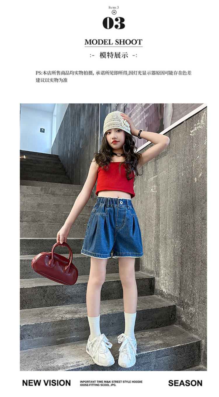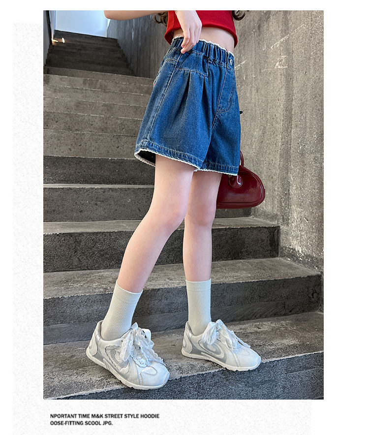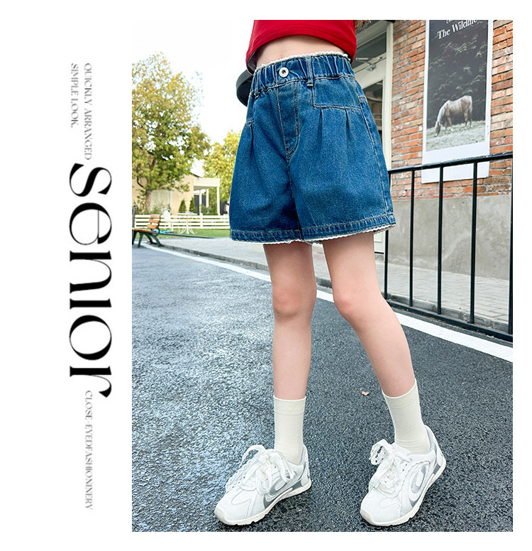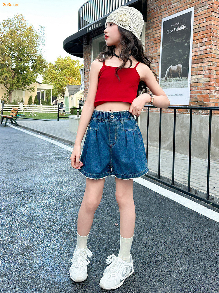 여자 여름 데님 반바지 2025 새로운 어린이 여름 바지 여자 큰 어린이 얇은 반바지 유행 핫 바지스토어 가기