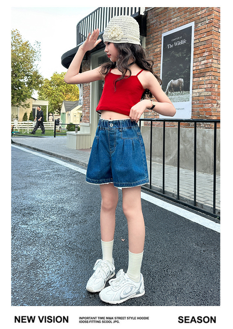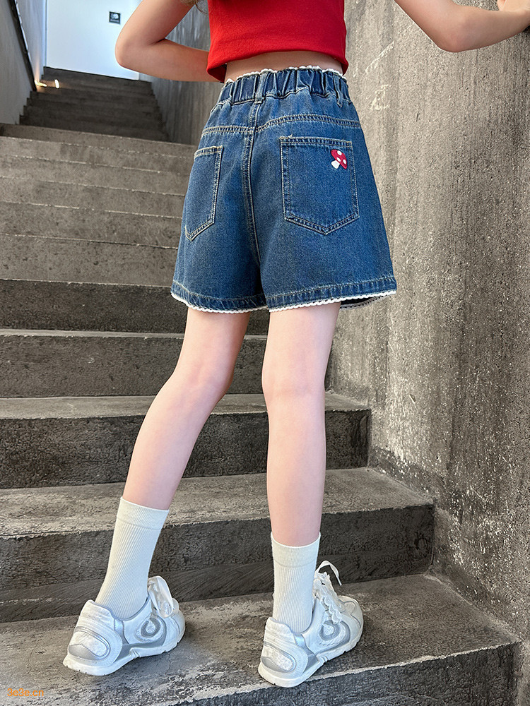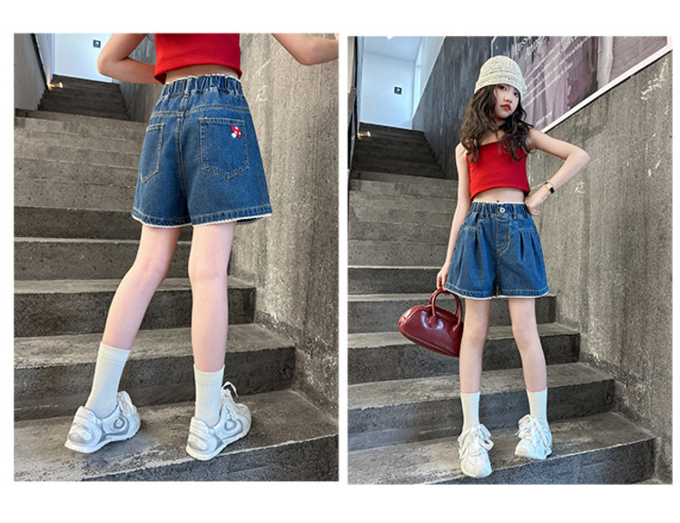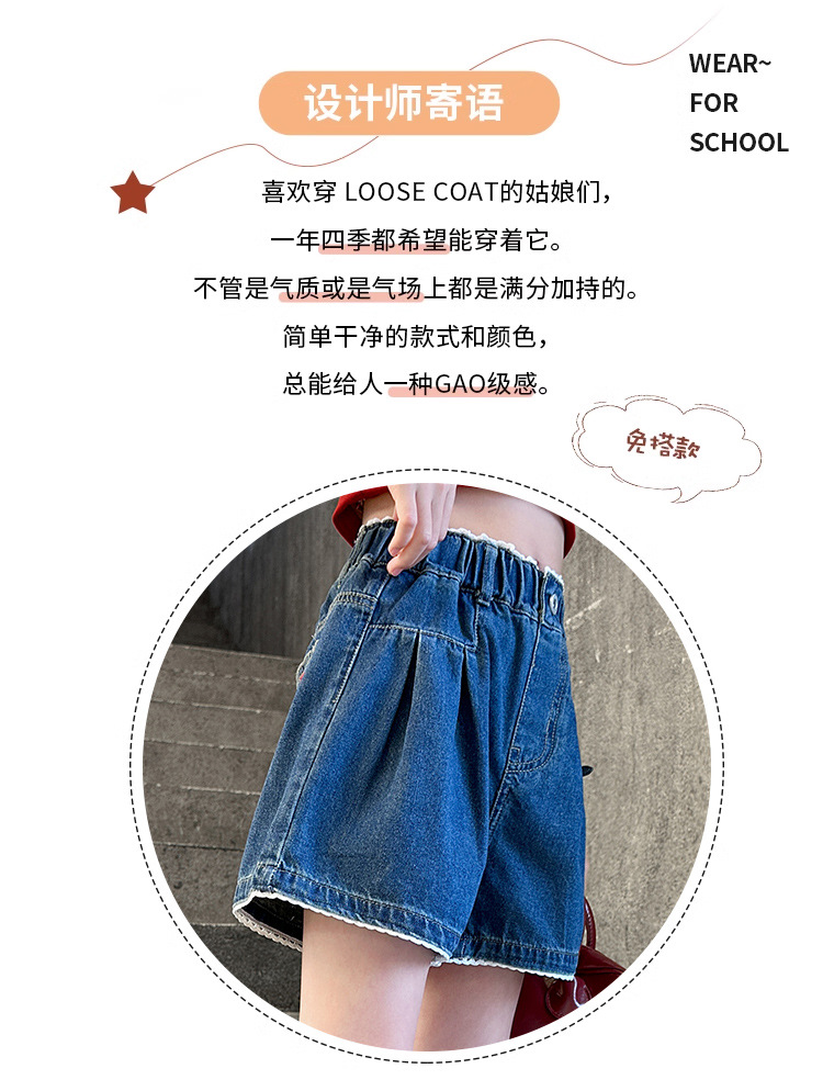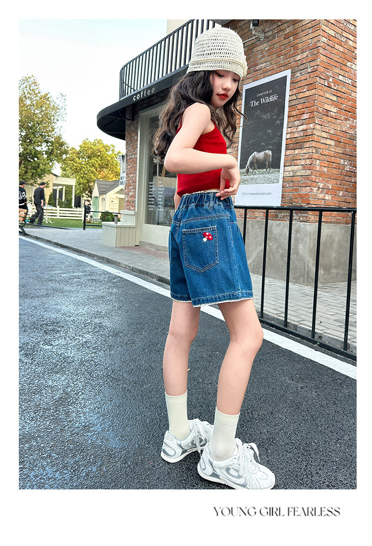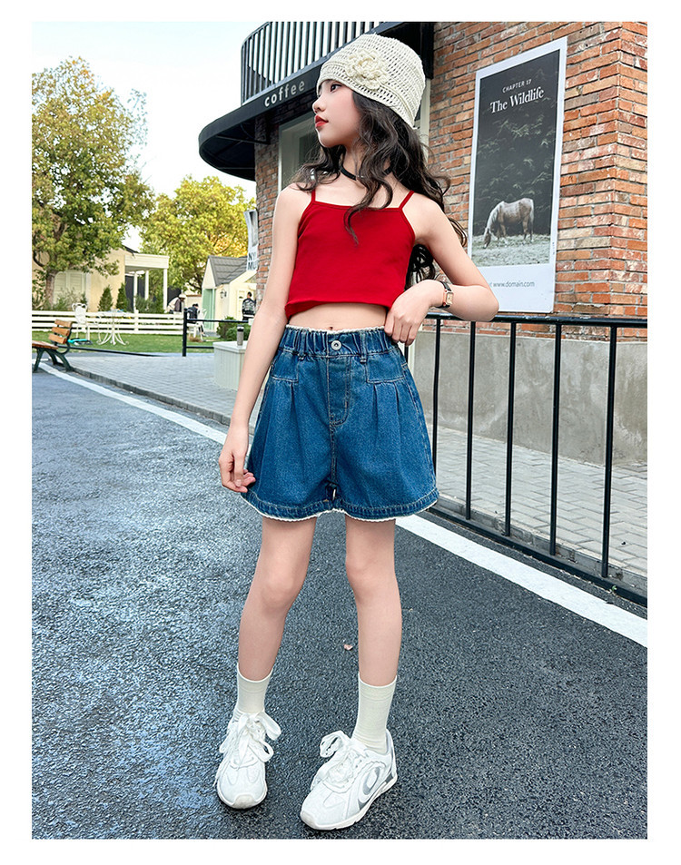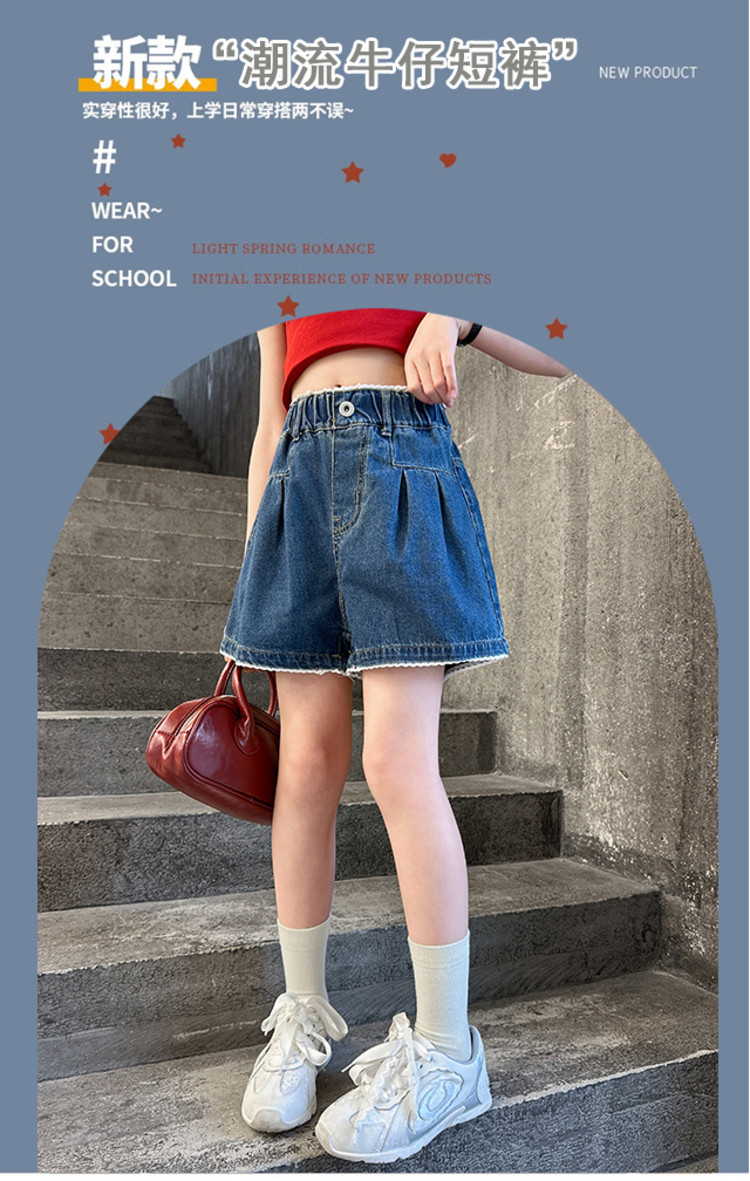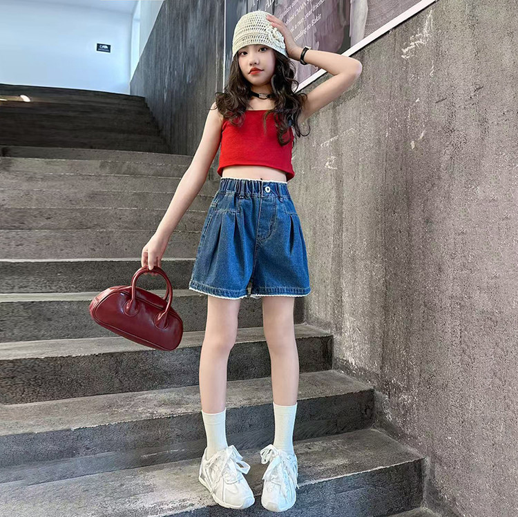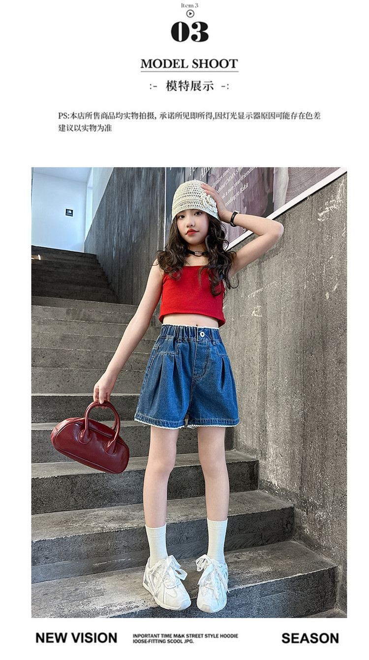여자 여름 데님 반바지 2025 새로운 어린이 여름 바지 여자 큰 어린이 얇은 반바지 유행 핫 바지스토어 가기