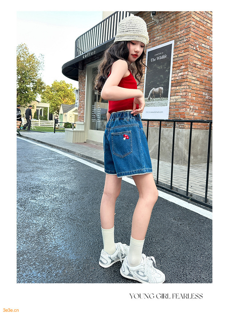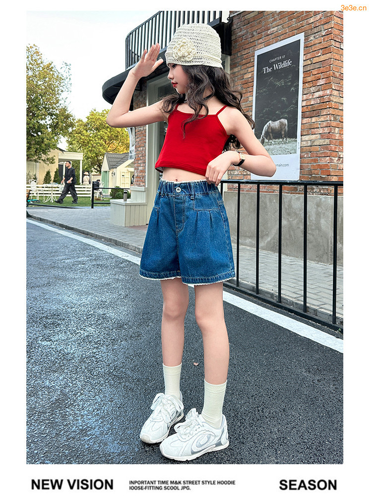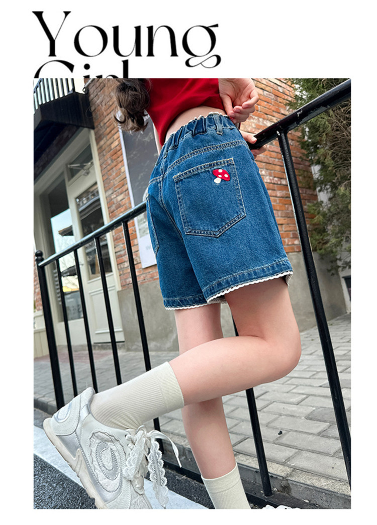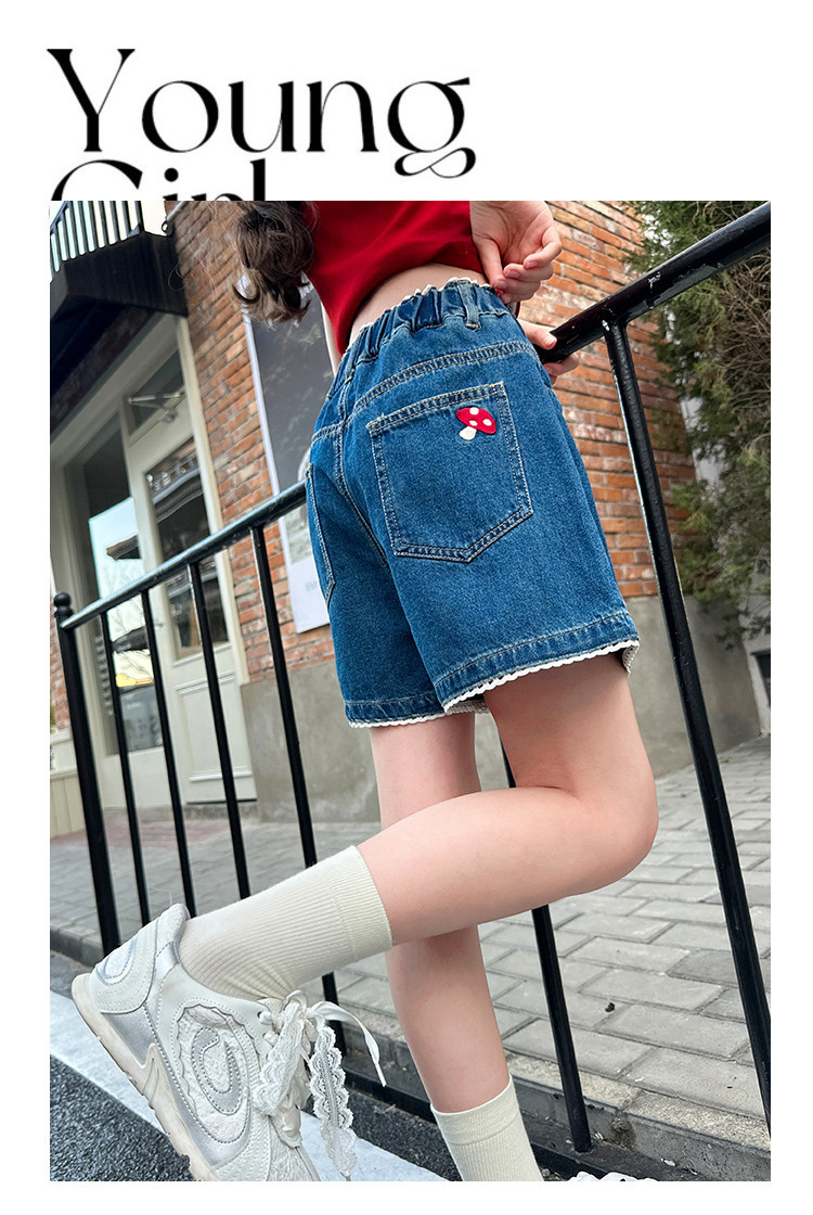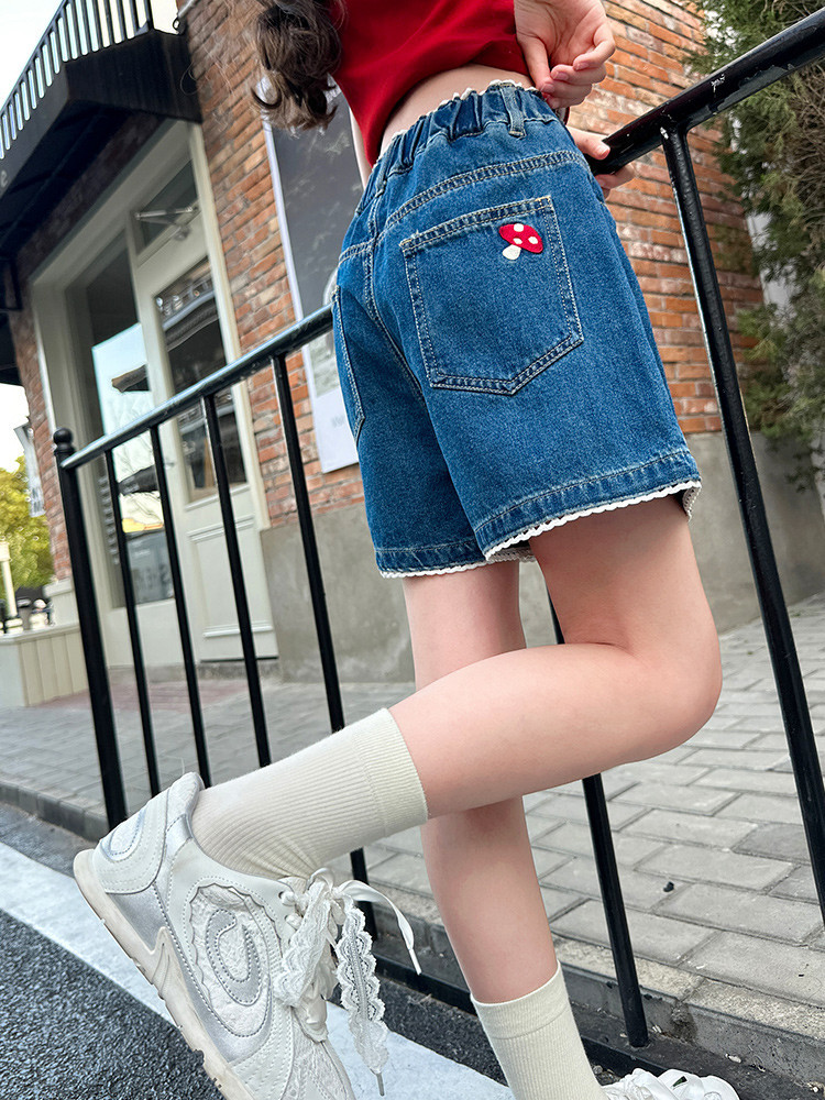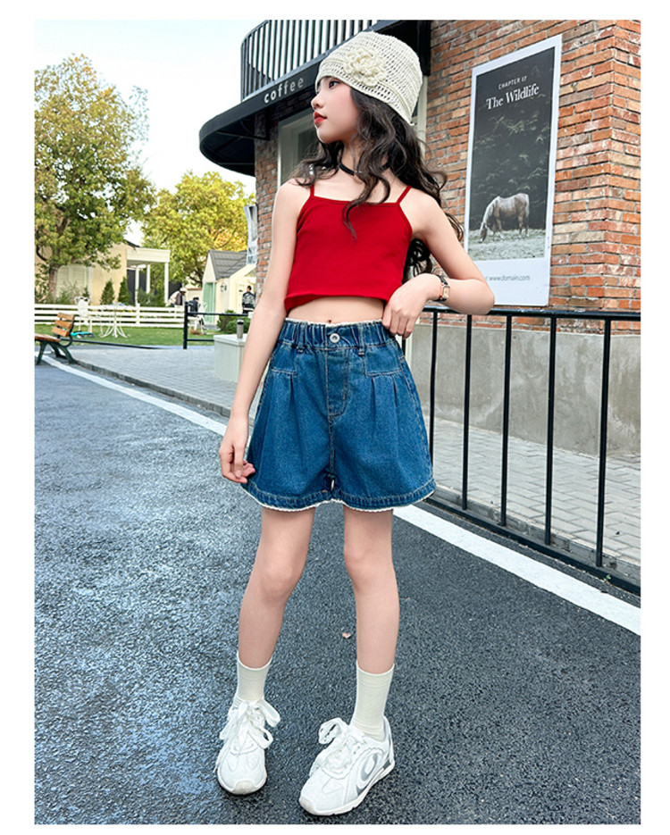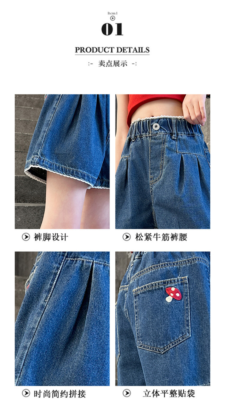 여자 여름 데님 반바지 2025 새로운 어린이 여름 바지 여자 큰 어린이 얇은 반바지 유행 핫 바지스토어 가기