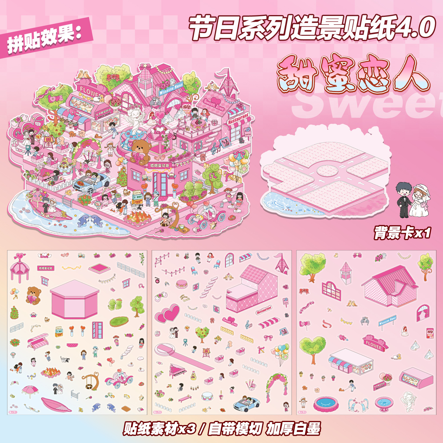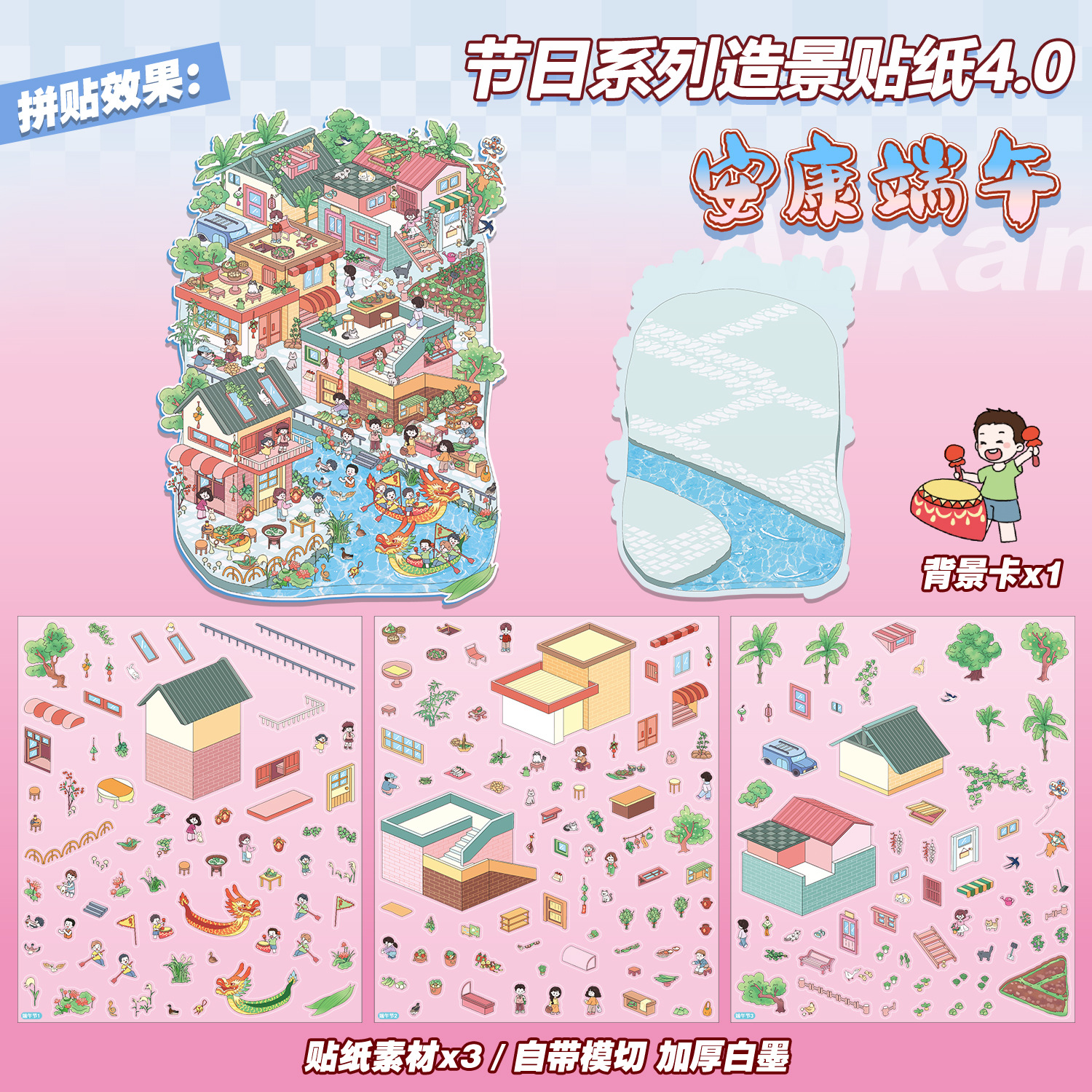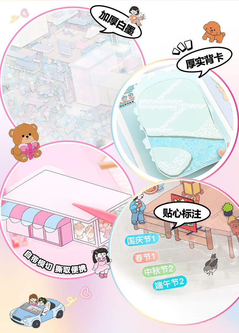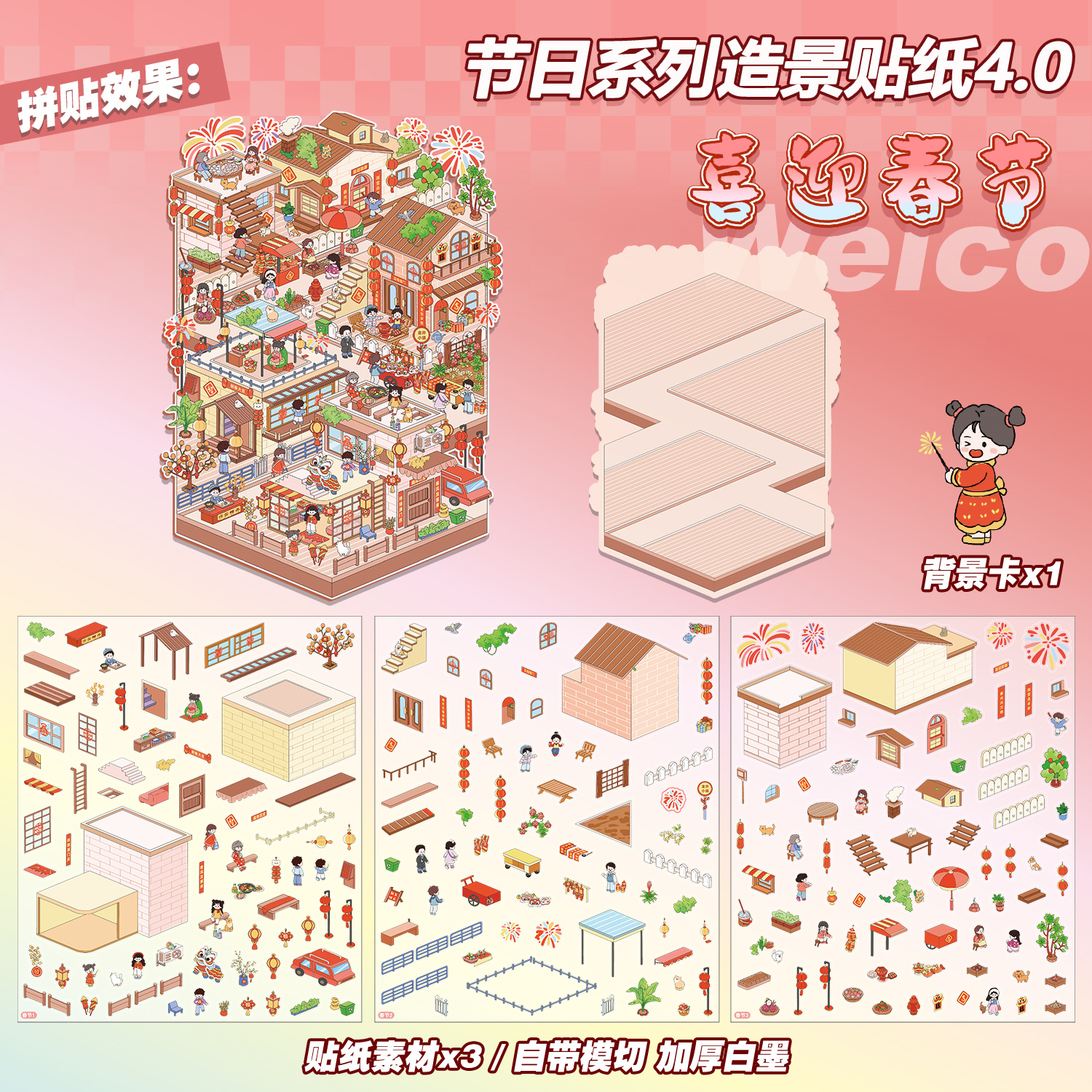 Junbei 4.0 휴일 시리즈 조경 스티커 대형 버전 국경일 등불 축제 새해 고대 스타일 소형 장면 장난감 소녀스토어 가기