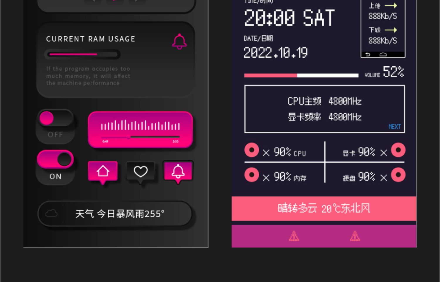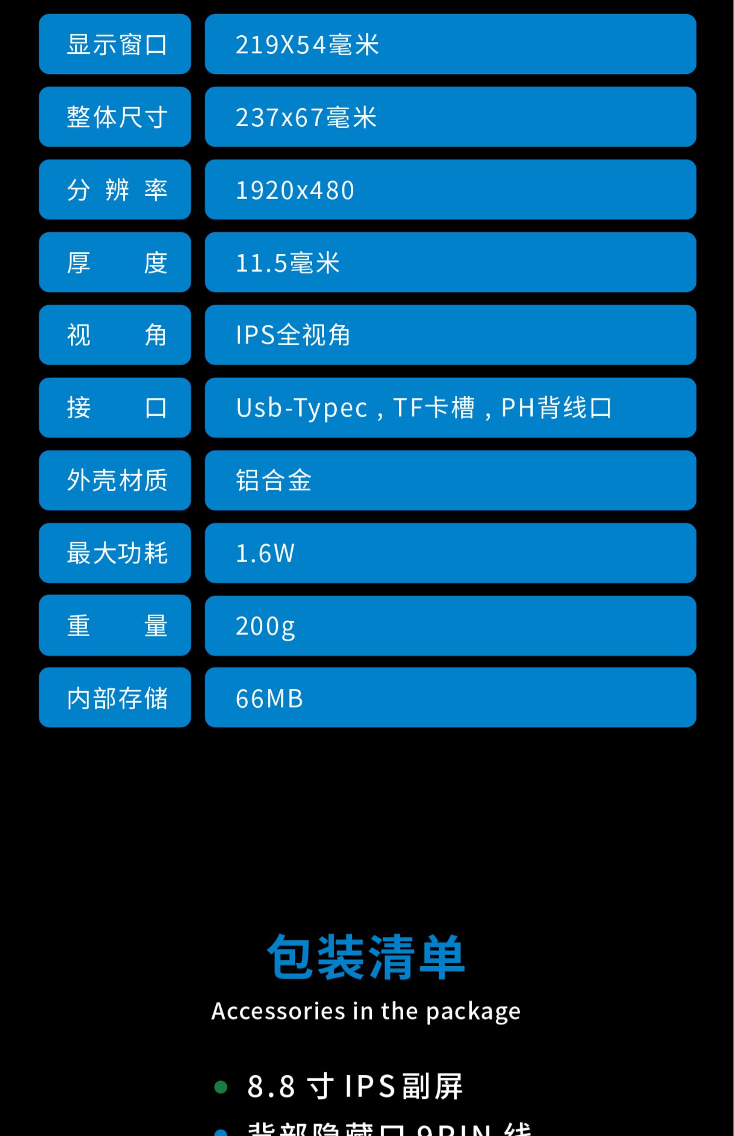 • 8.8inch 검정색 + 64G 고속 카드(DIY 테마 구매 권장) - 공식 표준 + 자기 브래킷(섀시의 금속 위치에 자기적으로 부착 가능)