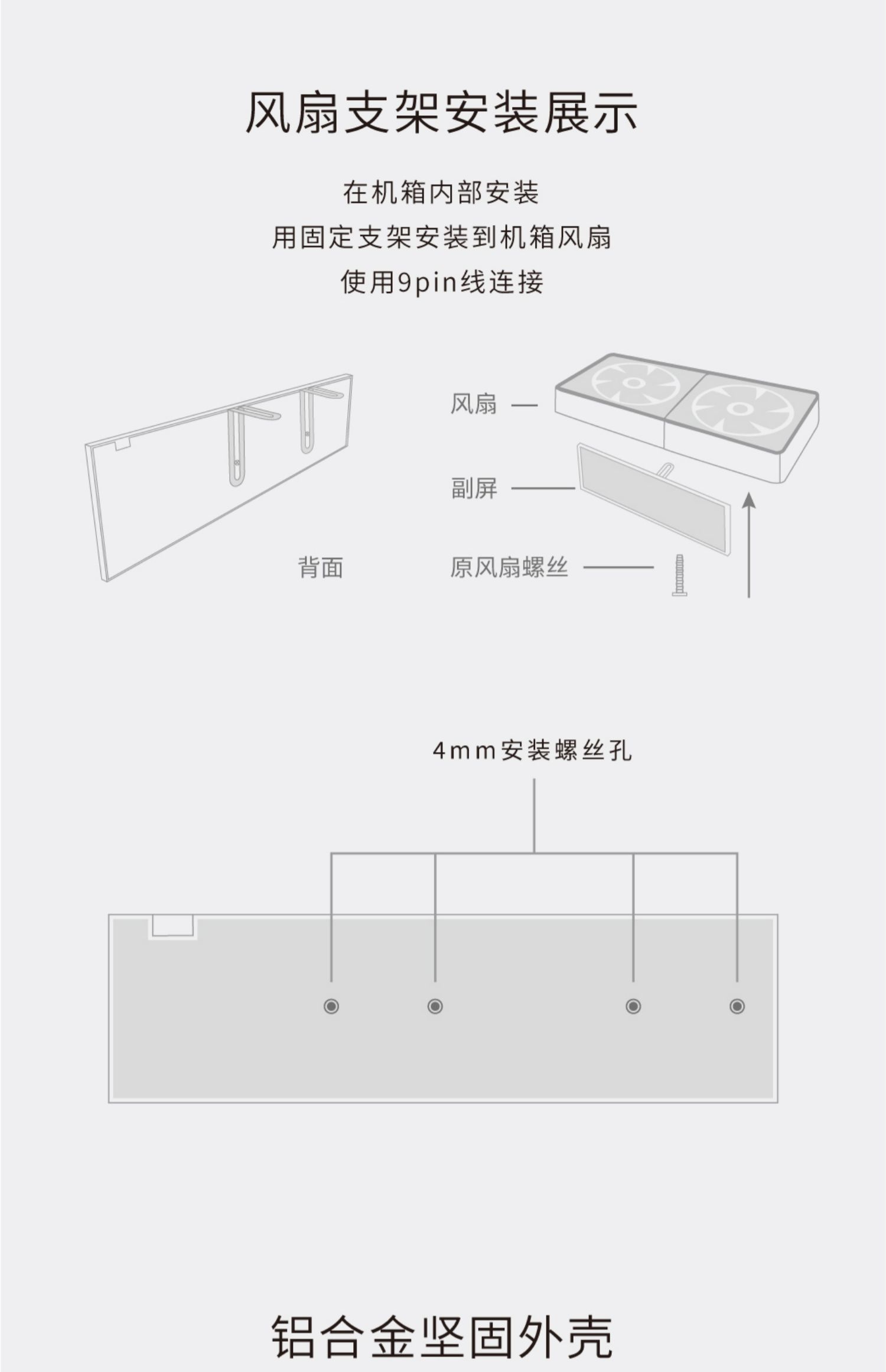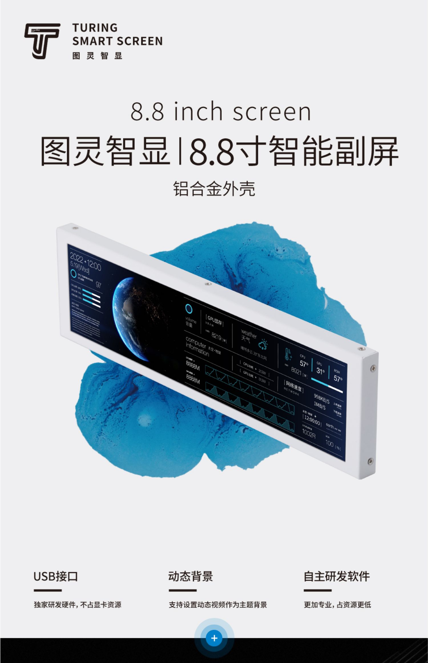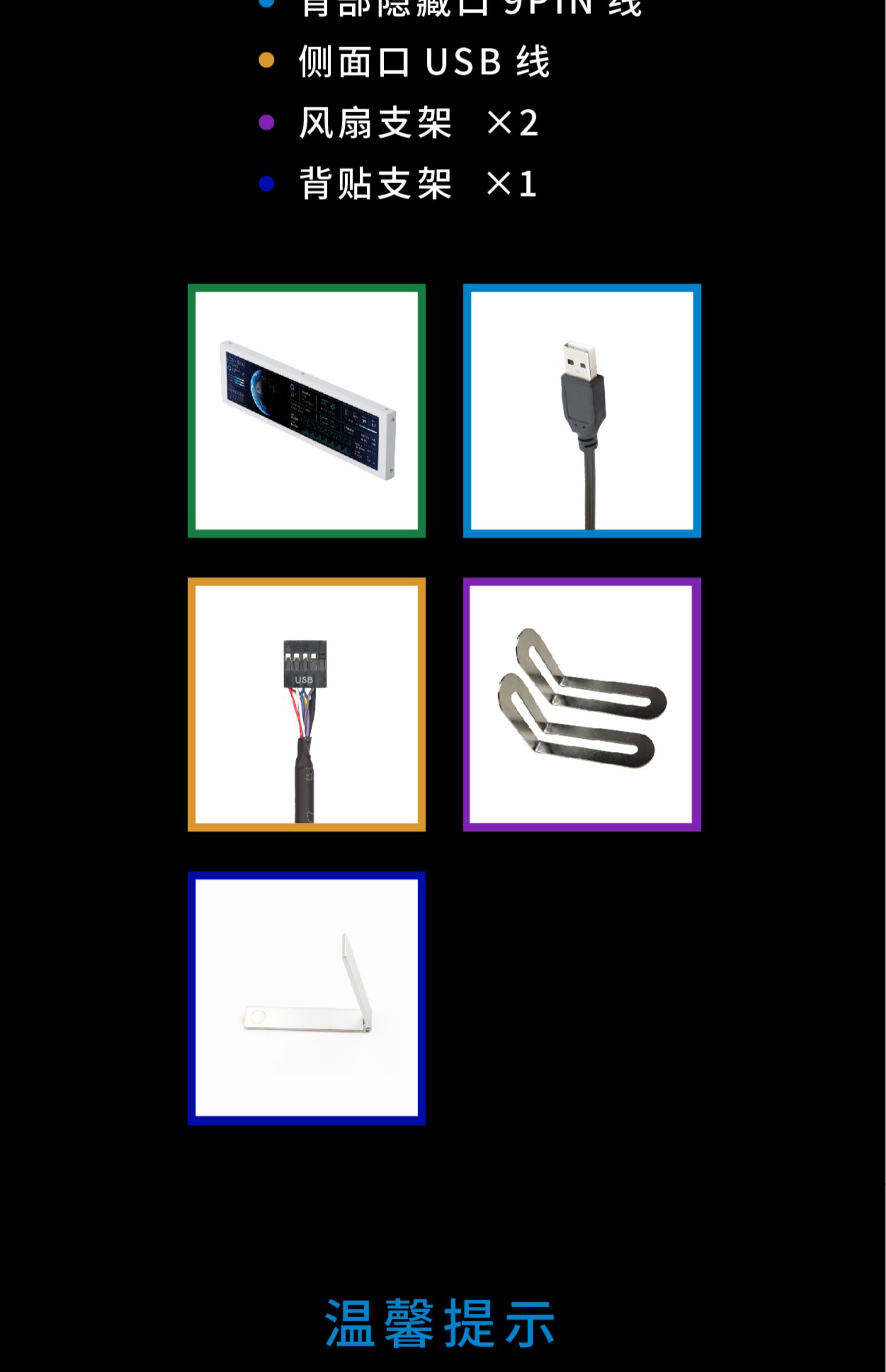 • 8.8inch 블랙 [성능을 차지하지 않음 - DIY 테마로 사용 가능] - 공식 표준 구성(USB 케이블/마더보드 케이블 + 팬 브래킷 + 데스크탑 브래킷 + 3M 양면 포함)