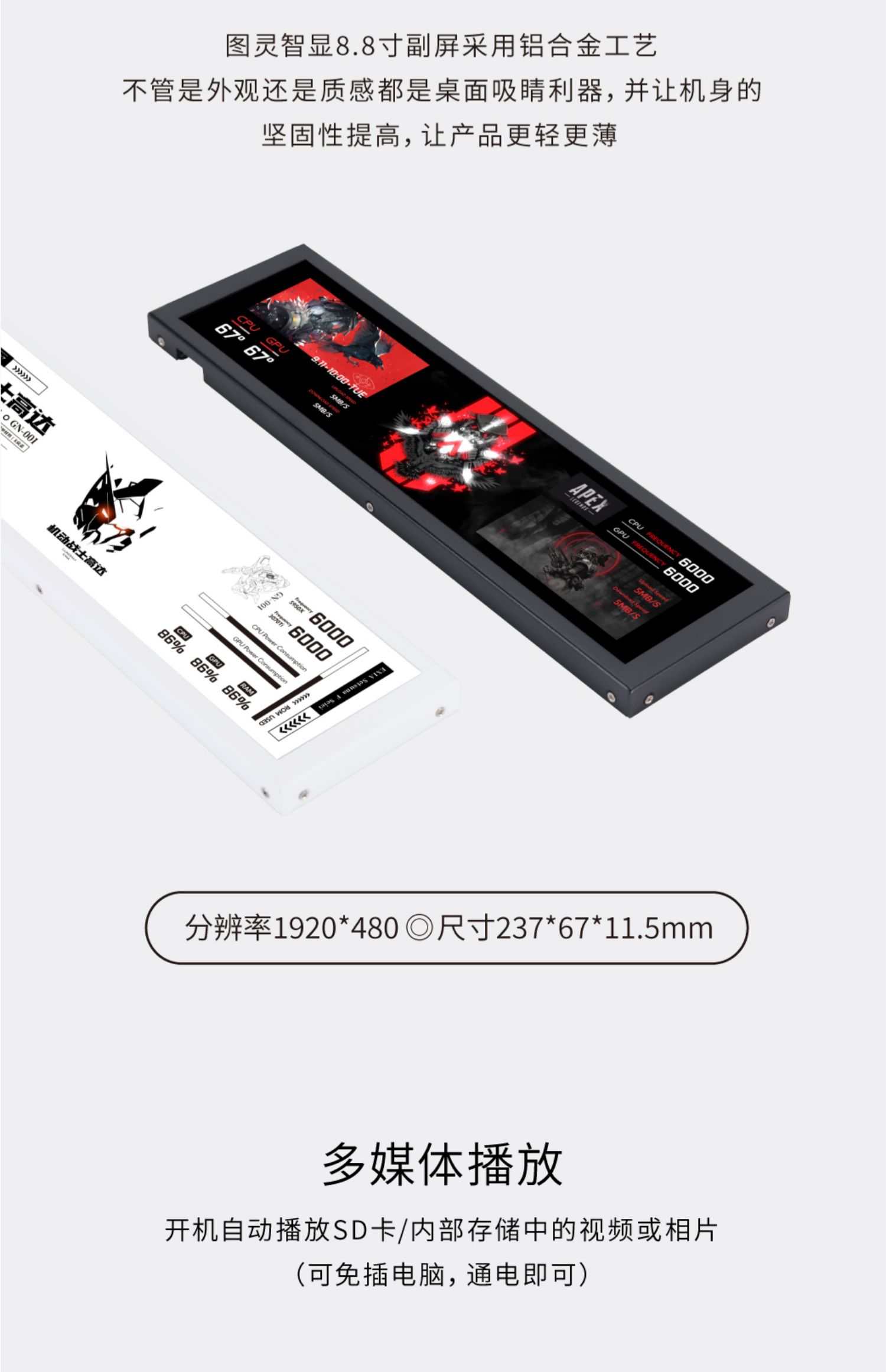 • 8.8inch 화이트 [성능을 차지하지 않음 - DIY 테마 가능] - 공식 표준 구성(USB 케이블/마더보드 케이블 + 팬 브래킷 + 데스크탑 브래킷 + 3M 양면 포함)
