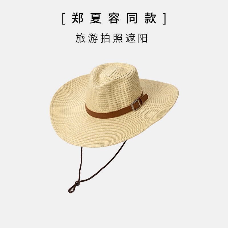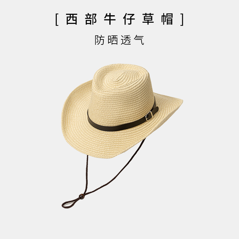• 베이지 12cm 확대 및 챙 넓어진 일본식 밀짚 카우보이 모자(벨트 스타일) [통기성 및 접이식 밀짚](전문 등급 2)