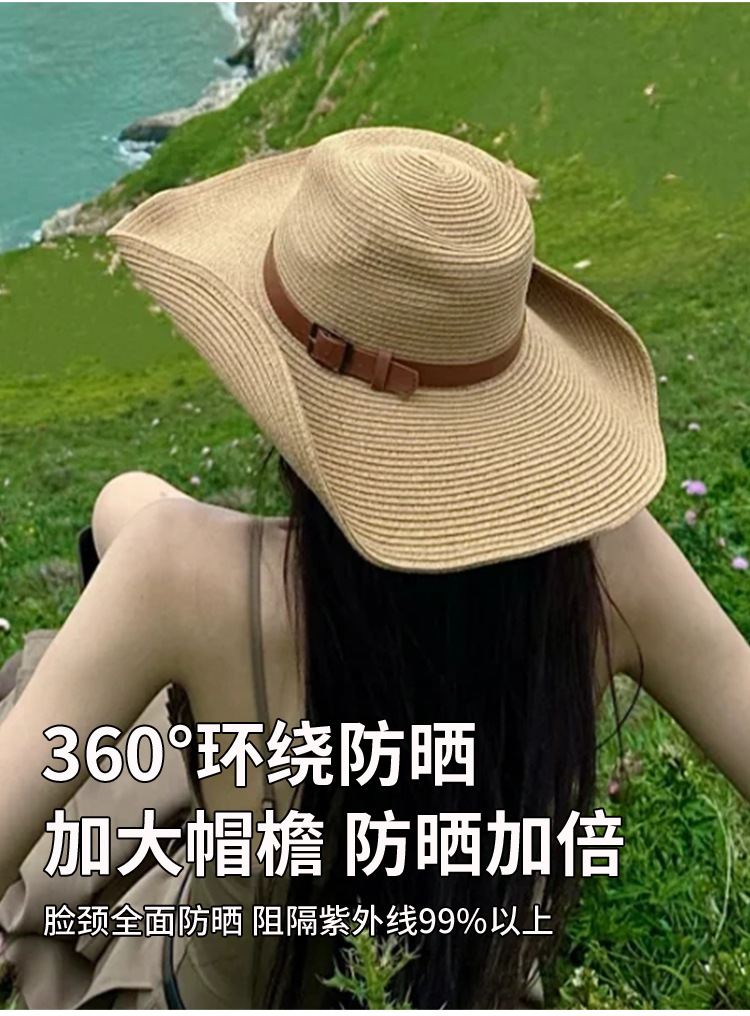 • 브라운 8cm 챙 - 일본산 밀짚 카우보이 모자(벨트 스타일) [밀짚 직조 통기성 및 접이식](전문 등급 실외 7