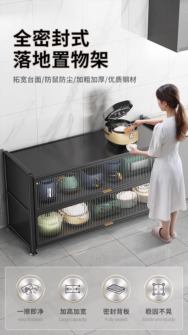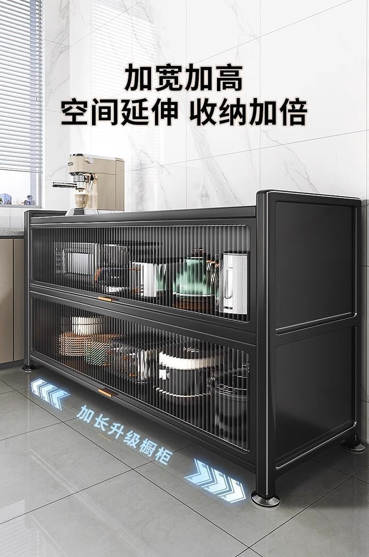 주방 바닥에서 천장까지 다층 수납 선반 도어가 있는 수납 캐비닛 전자 레인지 그릇 수납 캐비닛 다기능 수납 캐비닛스토어 가기