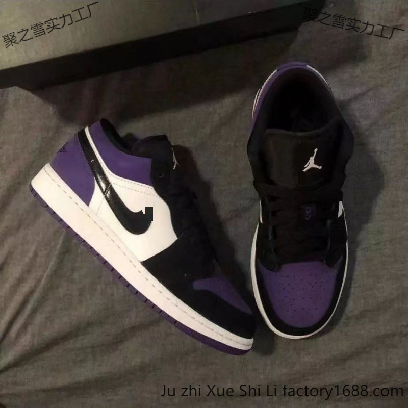 莆田纯原黑紫脚趾低帮AJ1复古篮球鞋男女休闲运动鞋情侣板鞋包邮