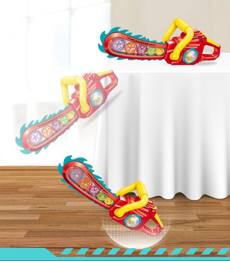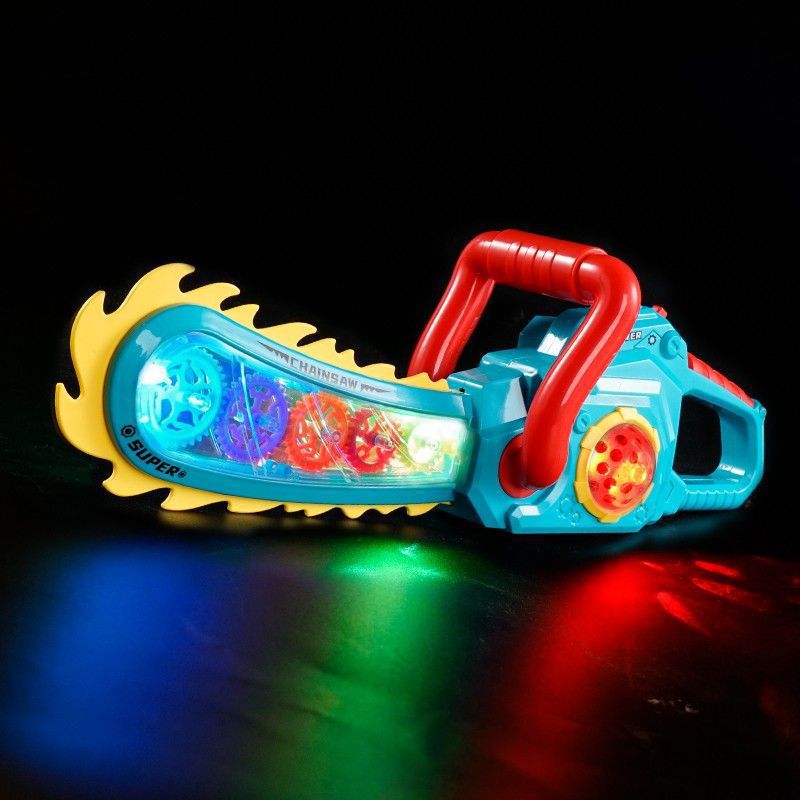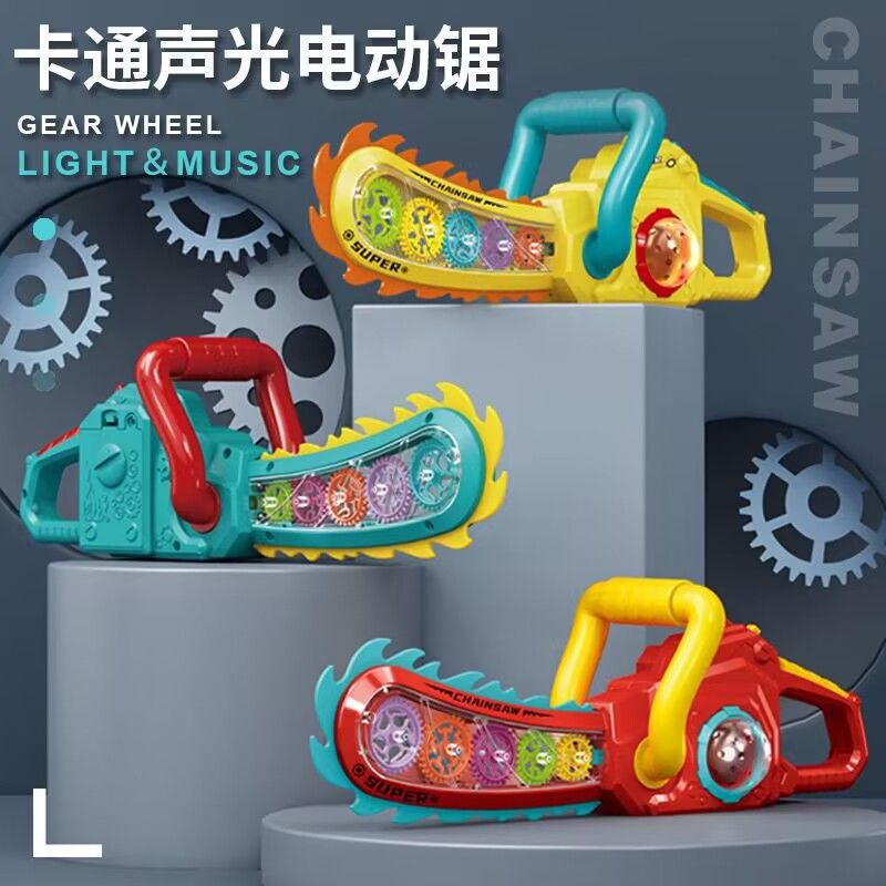 어린이 장난감 투명 톱 남자 검 대머리 전기 기어 만화 벌목 톱 빛나는 도끼 완전 자동 강력스토어 가기