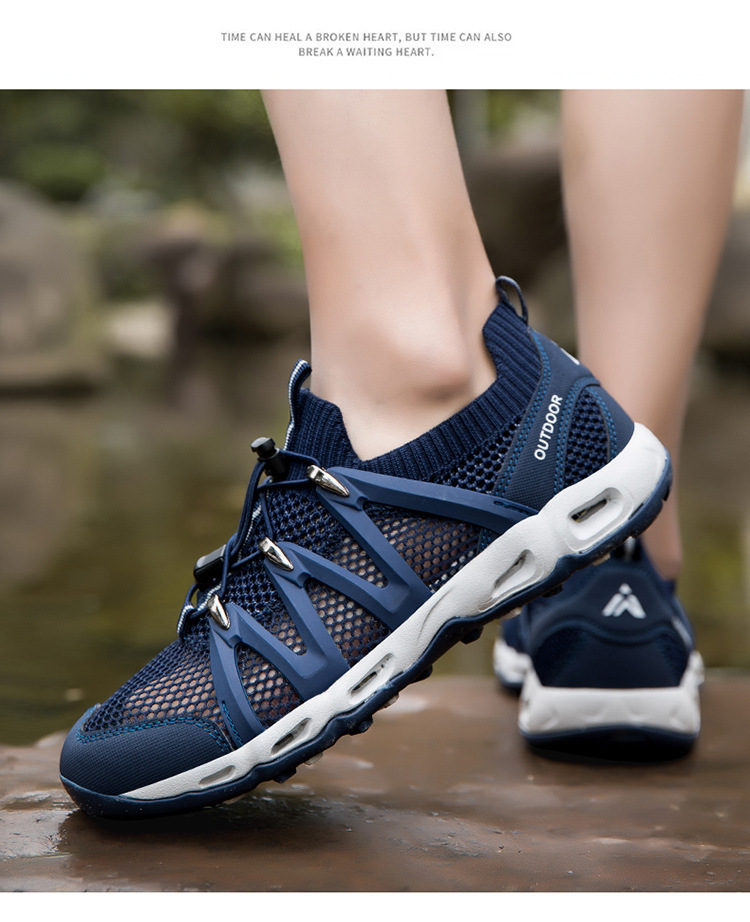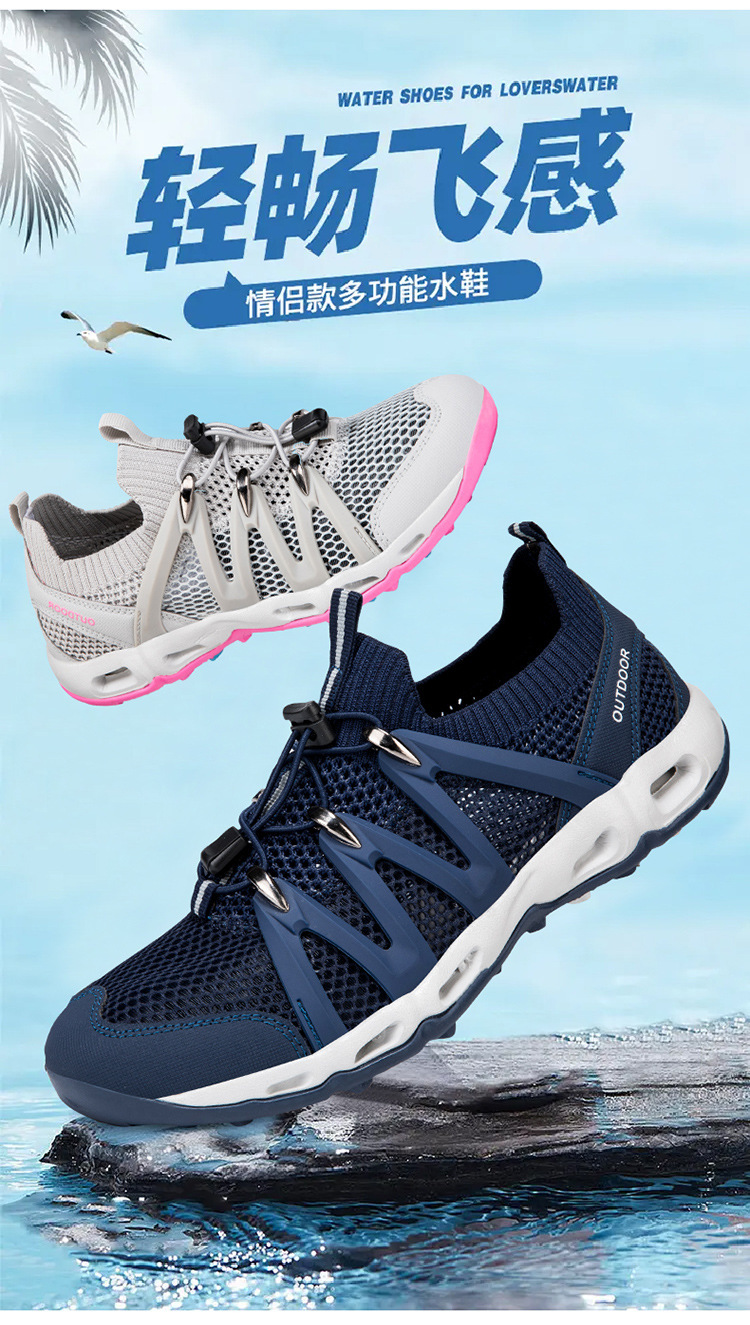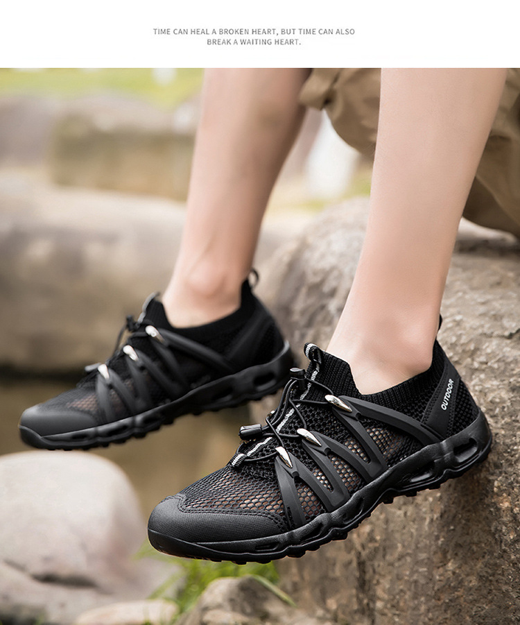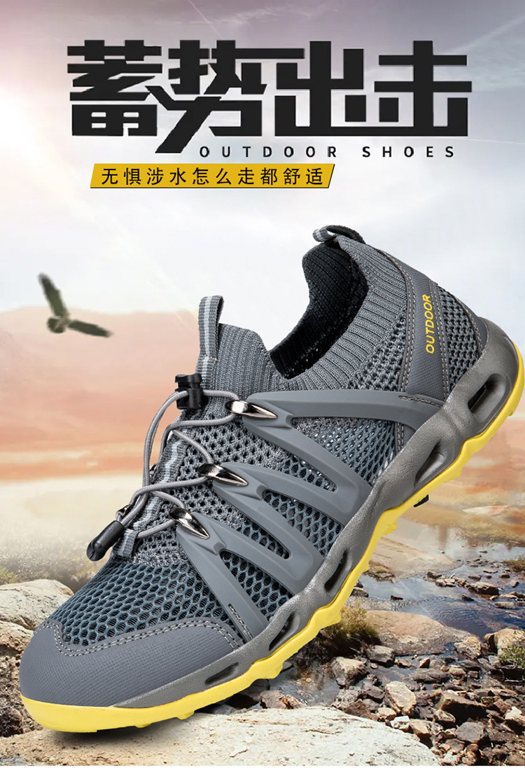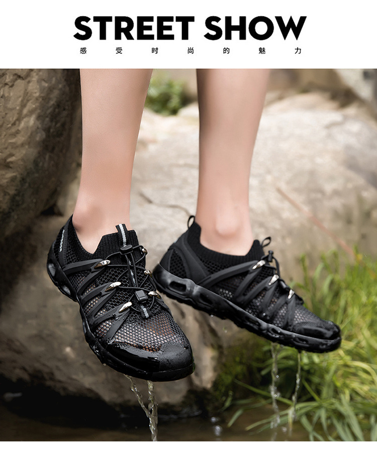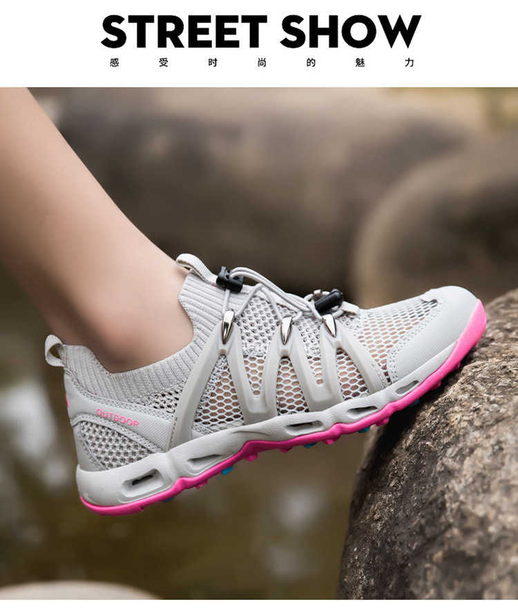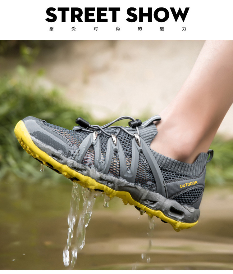 대외 무역 대형 남성 및 여성 리버 트레이싱 슈즈, 야외 하이킹 슈즈, 봄 여름 플라이 우븐 메쉬 중공 통기성 구멍 웨이딩 스포츠 슈즈