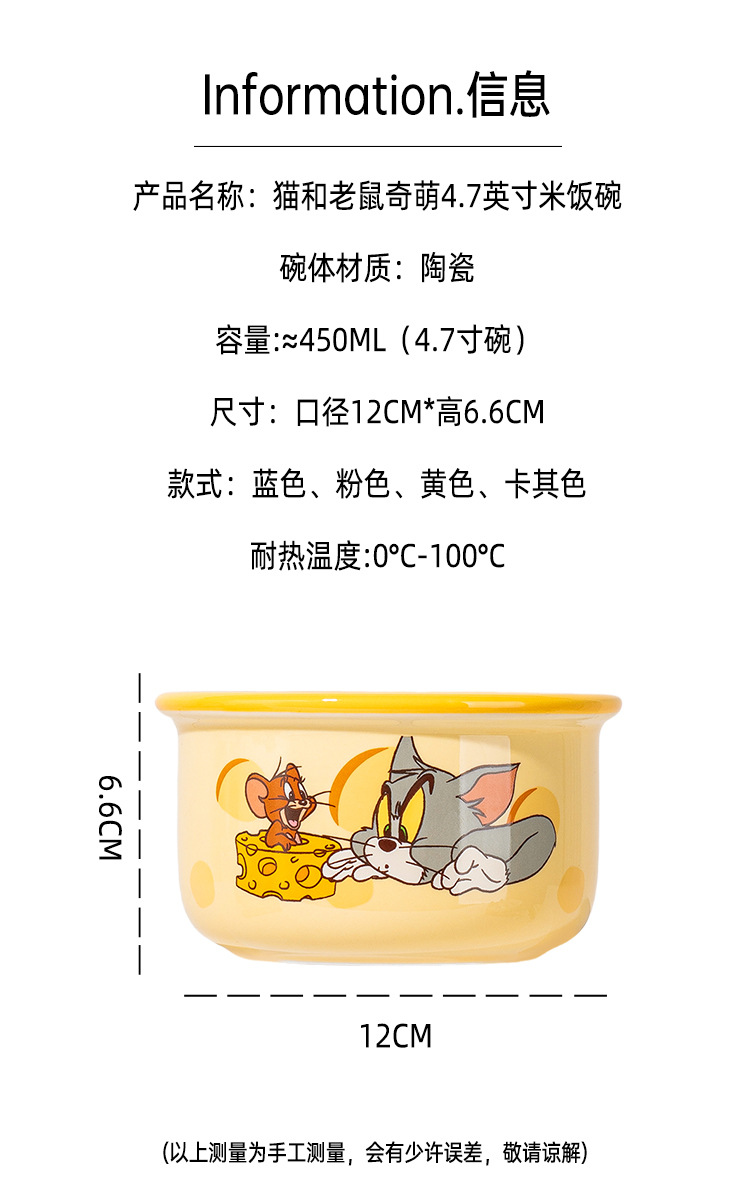 톰과 제리 밥 그릇 식기 귀여운 가정용 세라믹 먹는 그릇 샐러드 그릇 어린이 요구르트 그릇 생일 선물