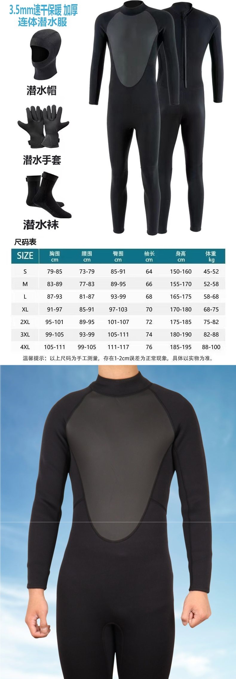 남성용 3.5mm 긴팔 따뜻한 잠수복, 일체형 자외선 차단 및 방수 여성용 스노클링 슈트, 서핑 방한 수영 및 다이빙 잠수복스토어 가기