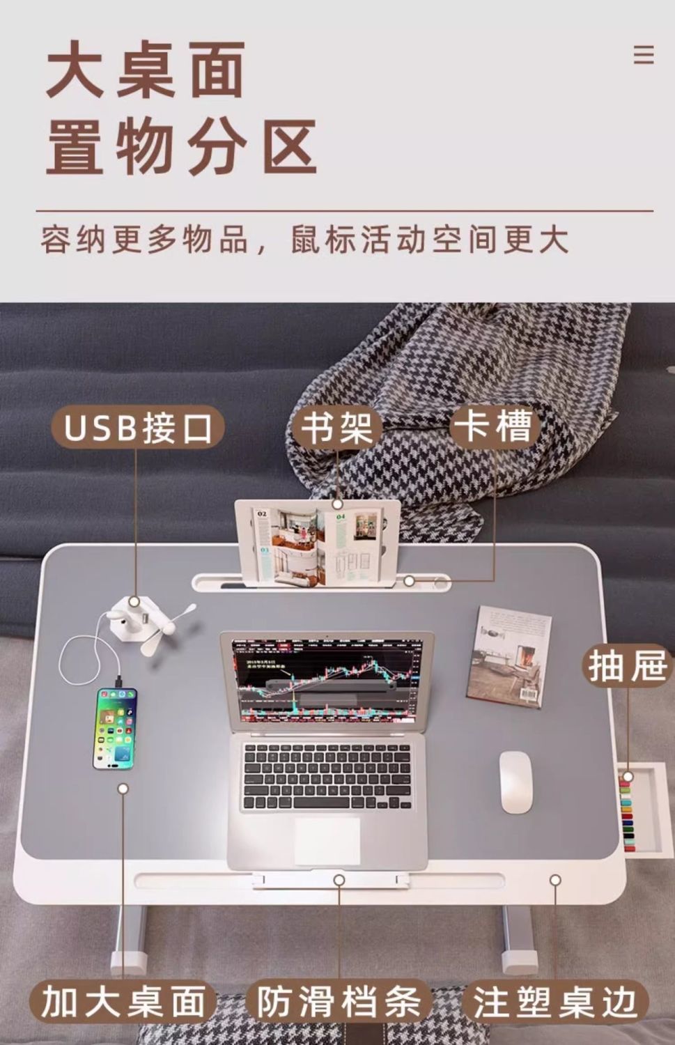 • N 카드 슬롯 + 미끄럼 방지 스트립 + 서랍 + 책장 + USB