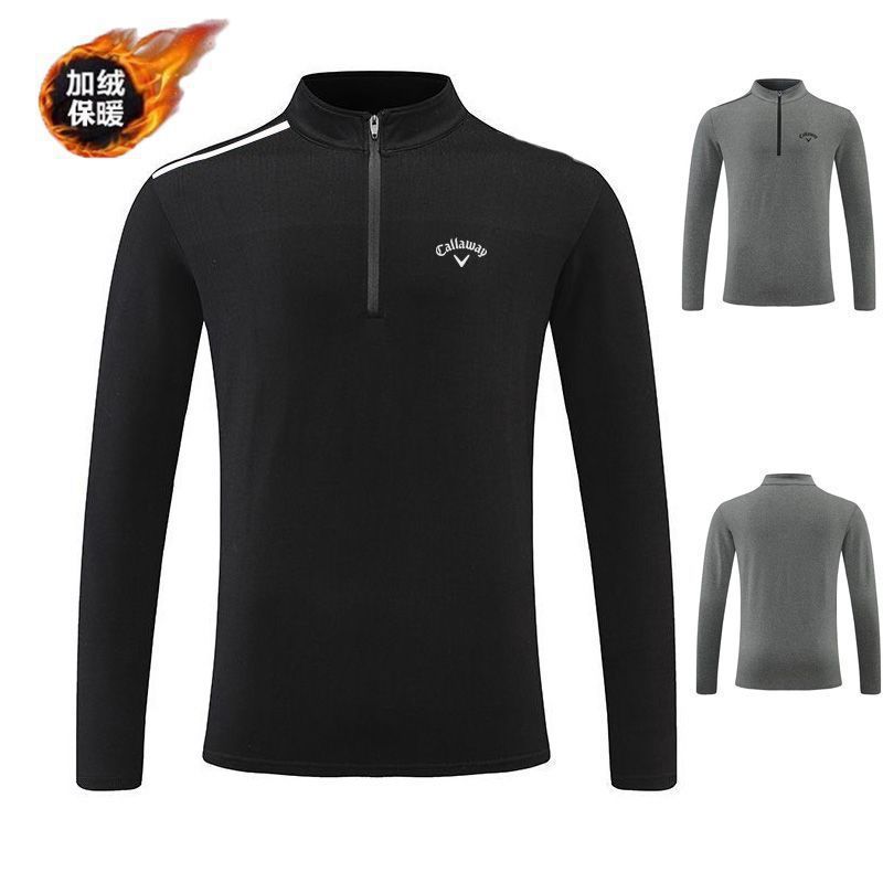 겨울 골프 남성용 벨벳 긴팔 따뜻한 스트레치 루즈 저지 지퍼 스탠드 칼라 방풍 티셔츠