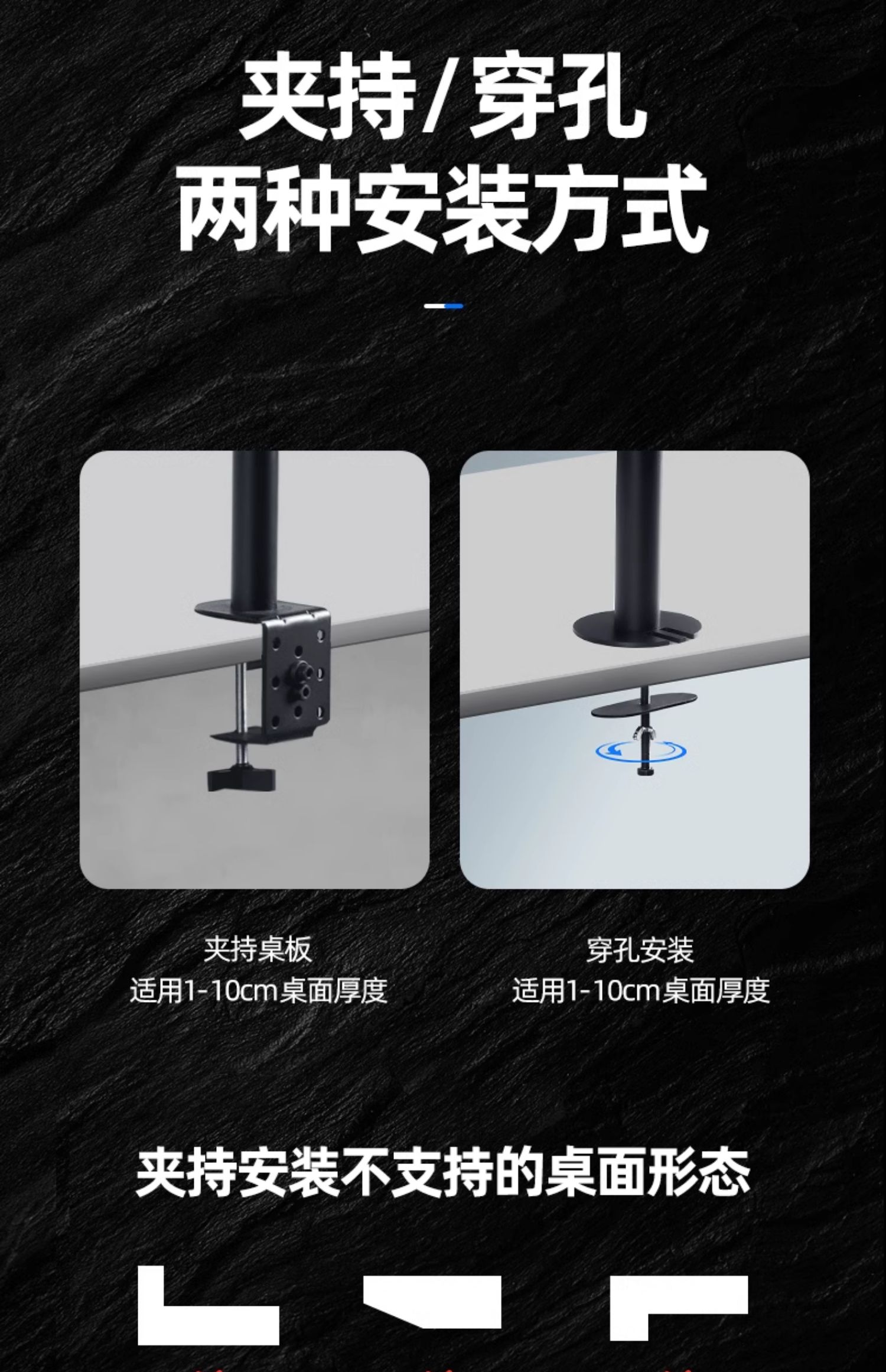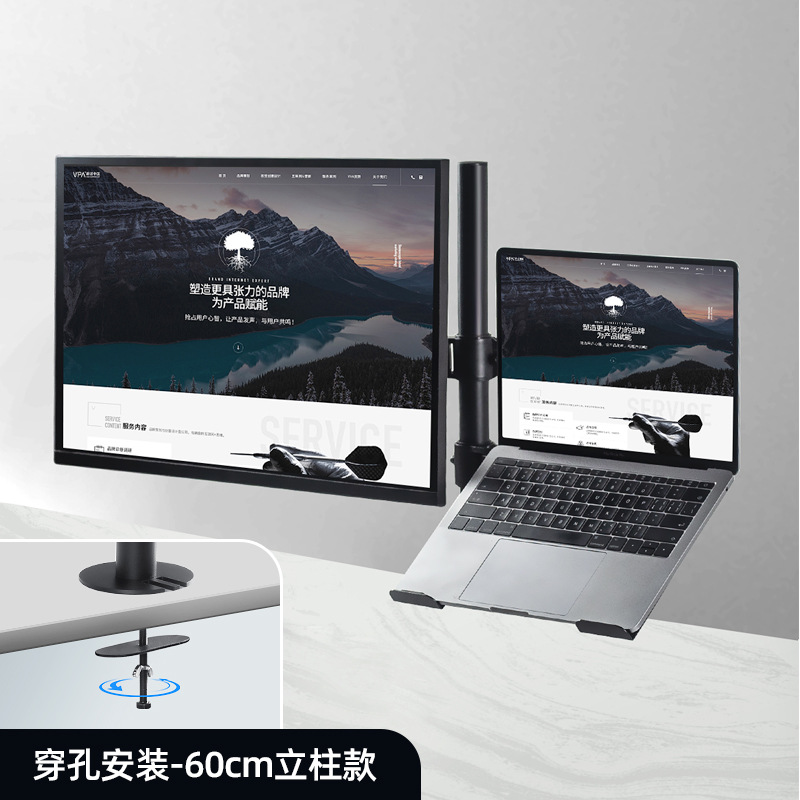 • 컴퓨터 + 노트북 왼쪽 및 오른쪽 듀얼 스크린 브래킷 강화 버전 60cm 기둥 - ( 17-27inch ) 테이블 구멍 설치 버전