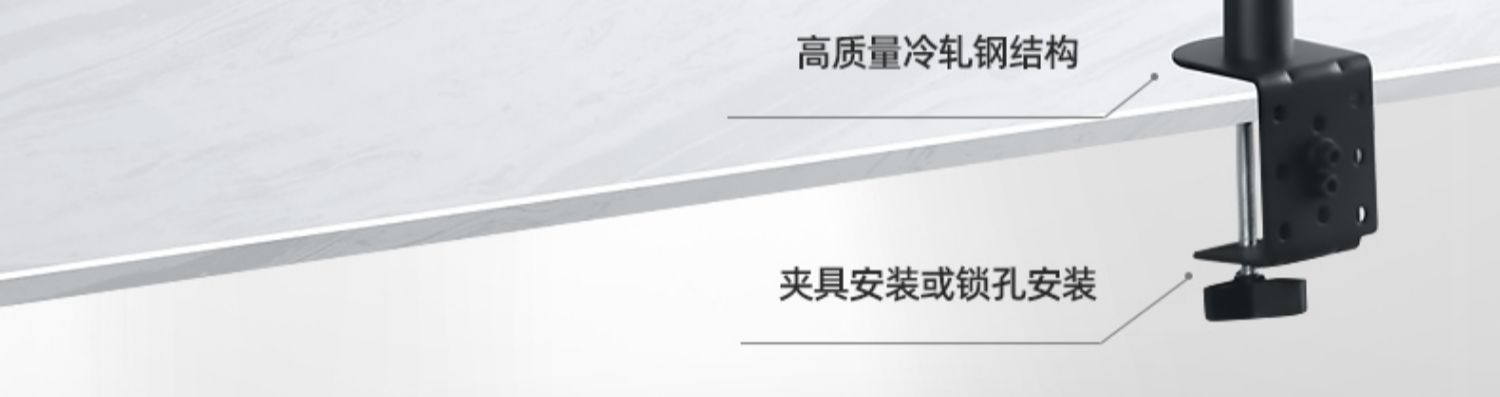 • 컴퓨터 + 노트북 좌우 듀얼 스크린 브라켓-( 17-27inch ) 클램프 테이블 설치 모델