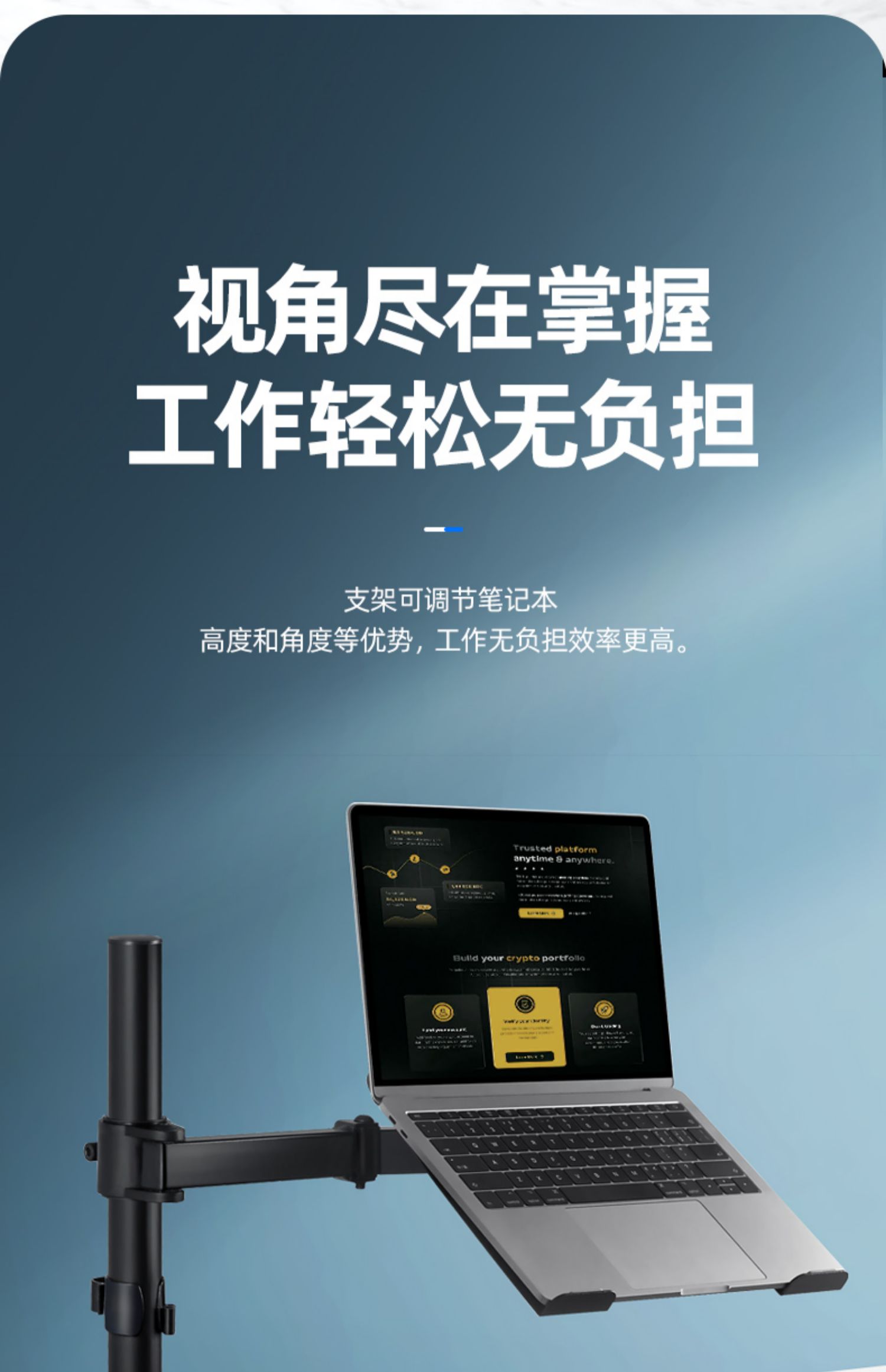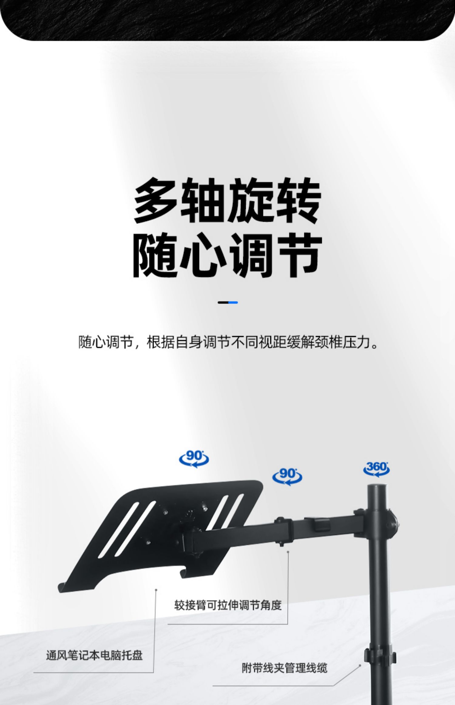 • 노트북 스탠드 - 공압식 로봇 팔 강화 버전 - 검정색 - 내하중 9KG 40cm 컬럼, 정방향 및 역방향 설치 가능