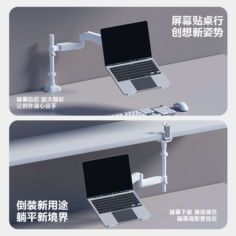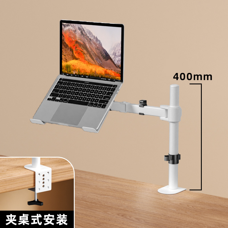 • 노트북 스탠드 - 흰색 - 기계식 암 공압식 강화 모델 - 내하중 9KG, 40cm 기둥, 정방향 및 역방향 설치 가능