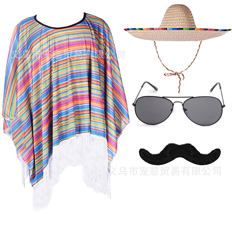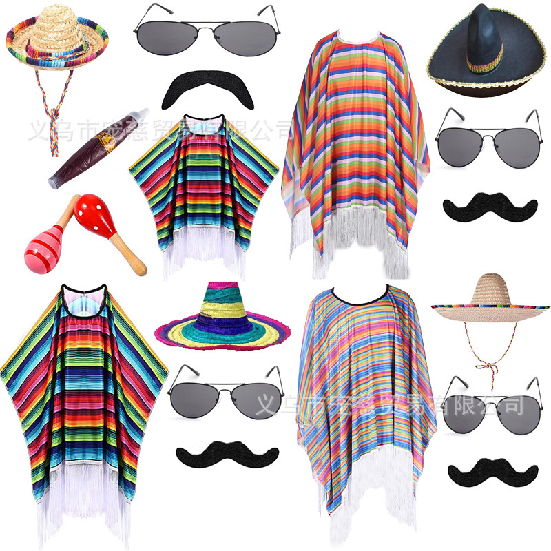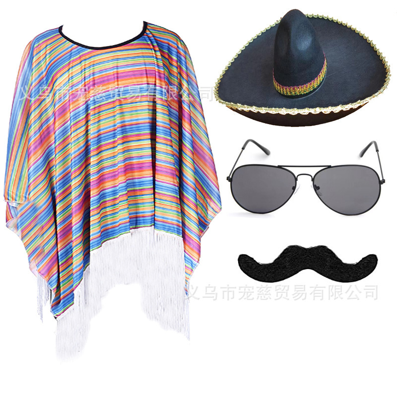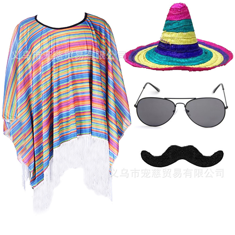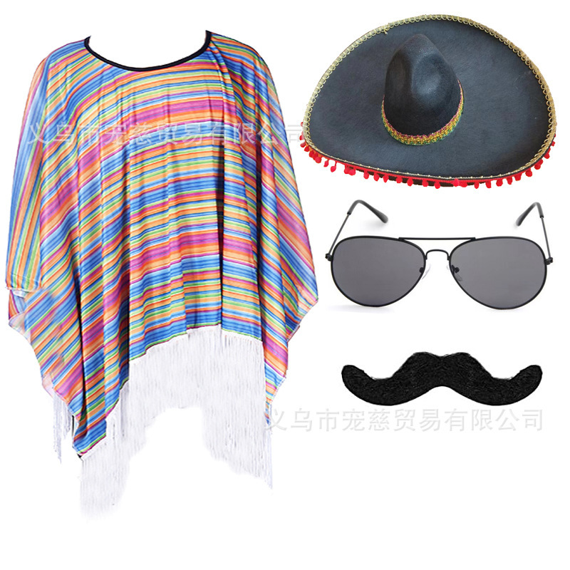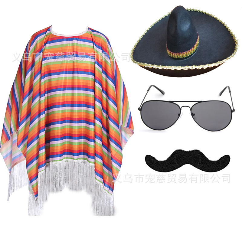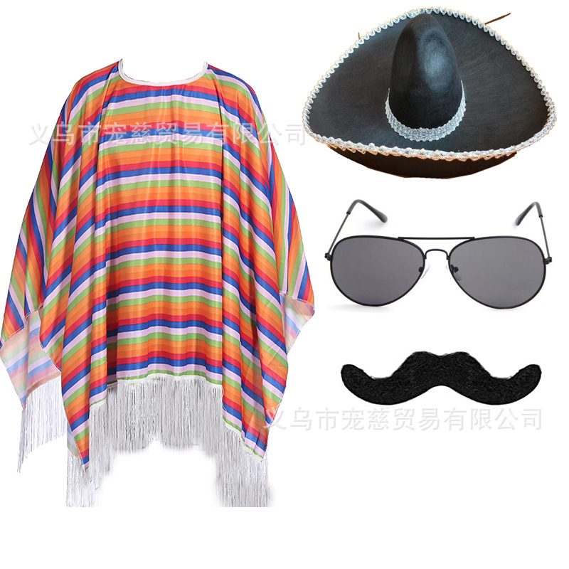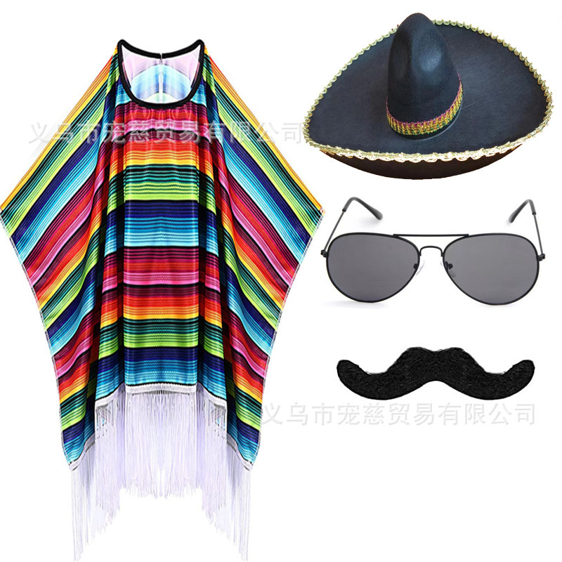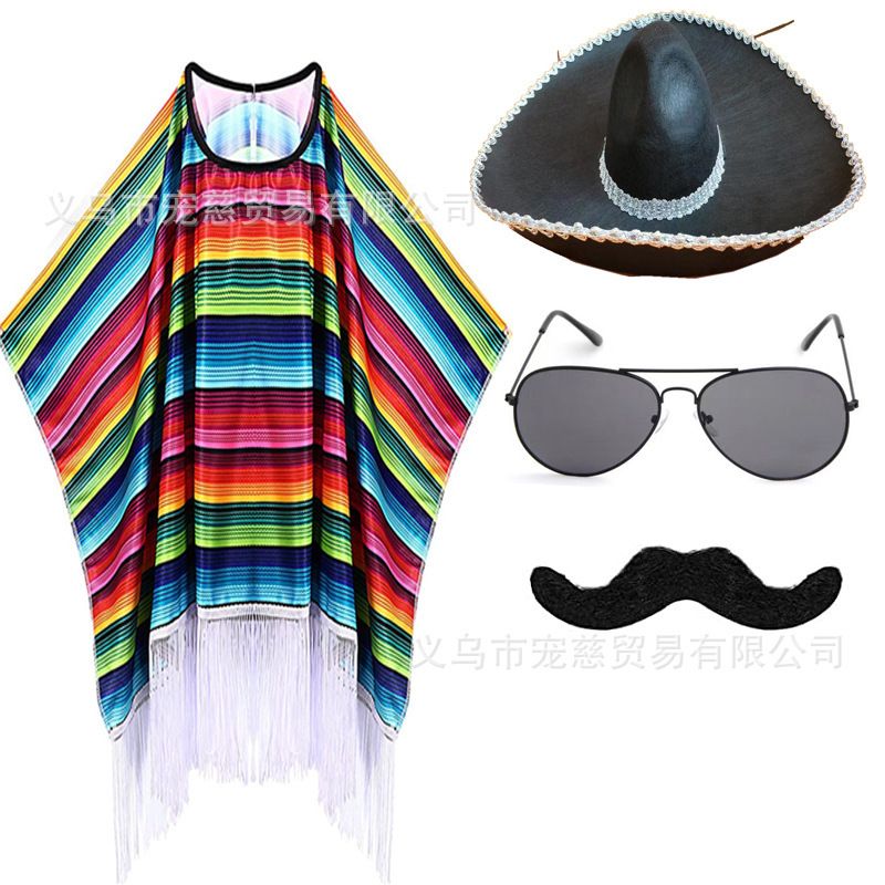 할로윈 어린이 멕시코 망토 의상 가장 무도회 성인 멕시코 망토 케이프 의상 세트