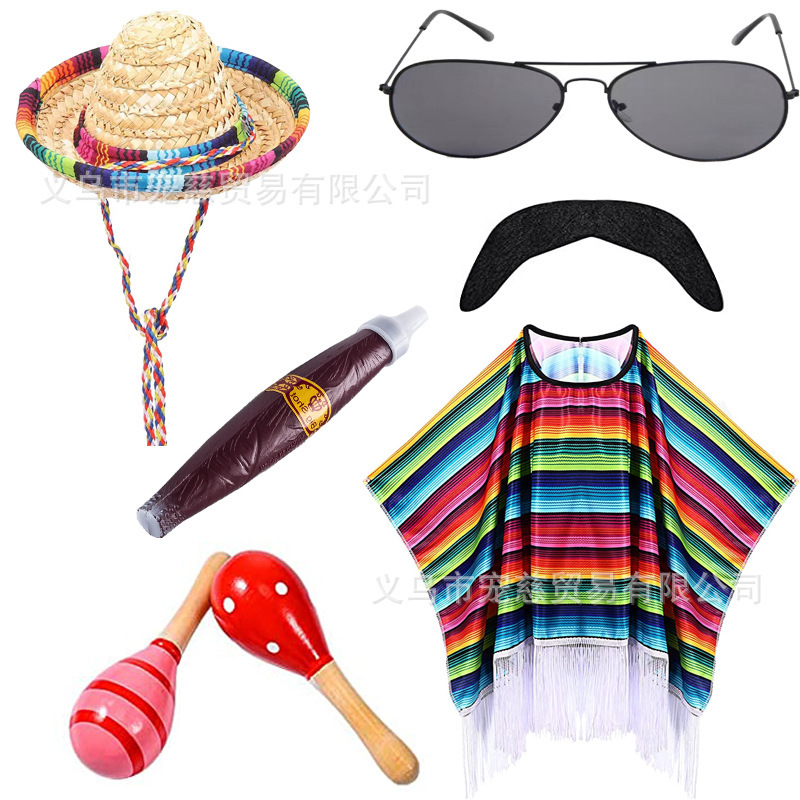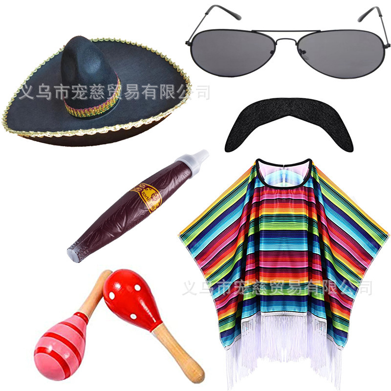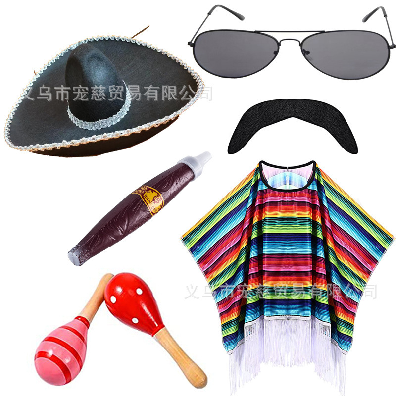 • 멕시코 성인 + 화려한 모자 + 선글라스 + 시가 + 마라카스