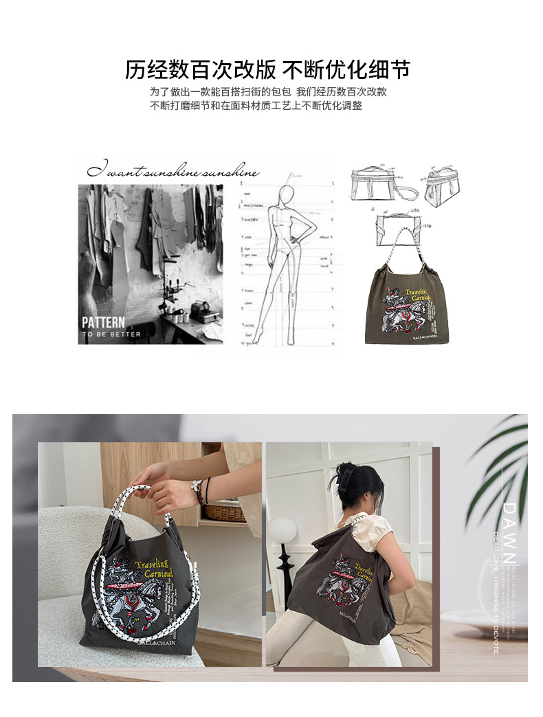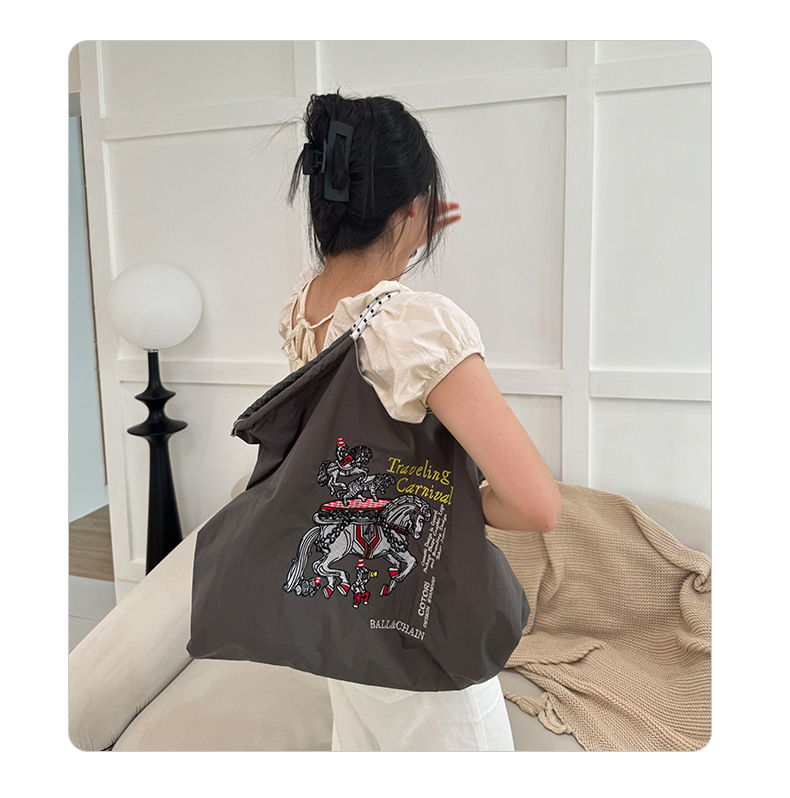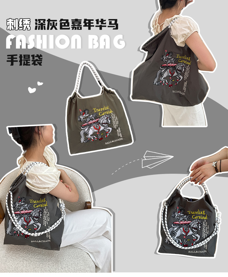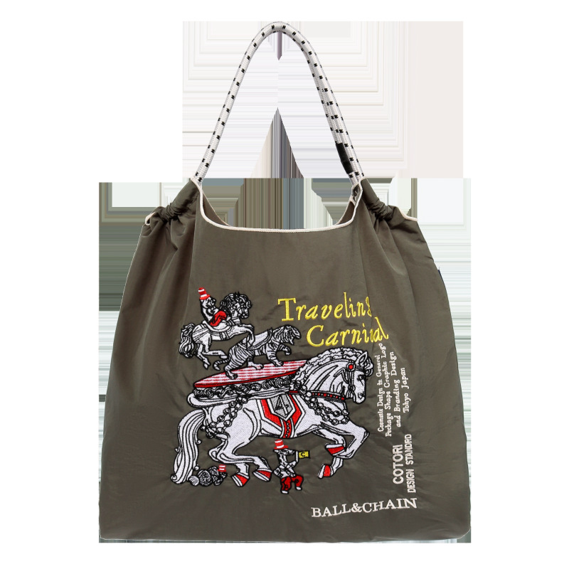 봄 신작 일본 자수 볼 체인 친환경 가방 여성용 가방 쇼핑 크로스 바디 백 숄더 캔버스 가방 핸드백스토어 가기