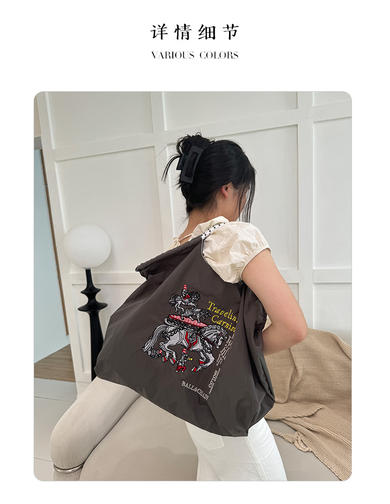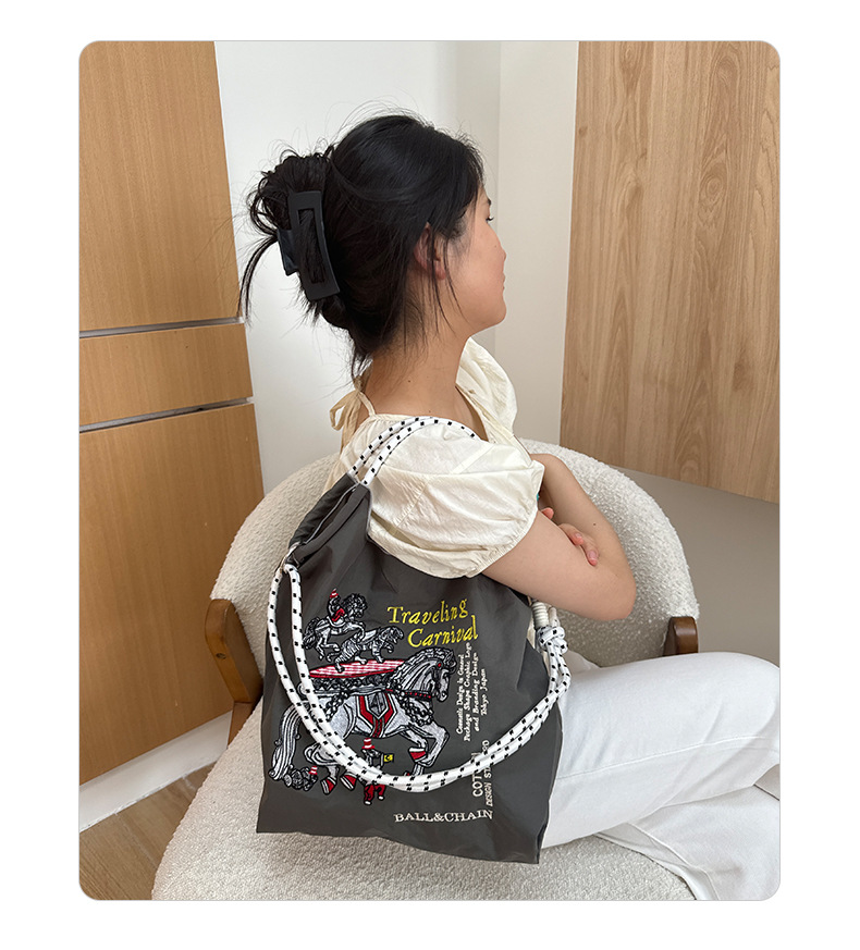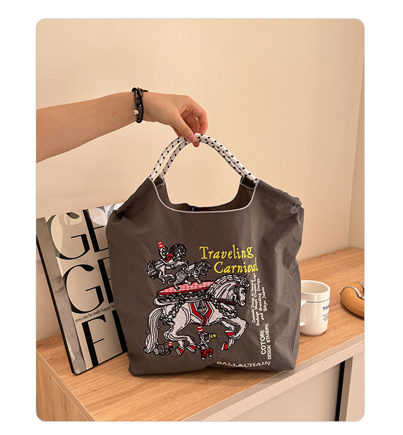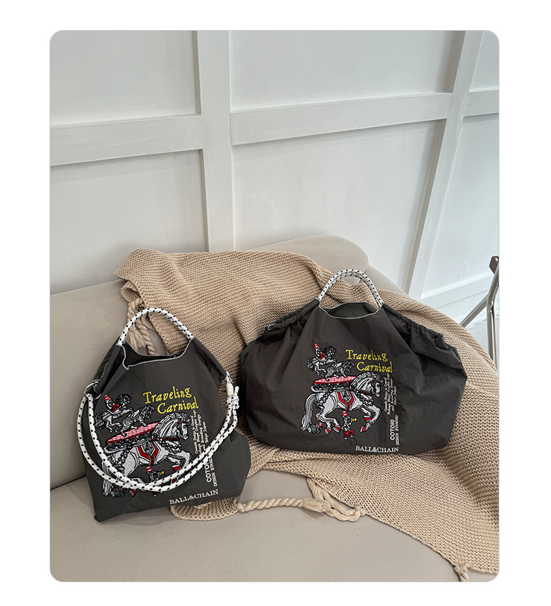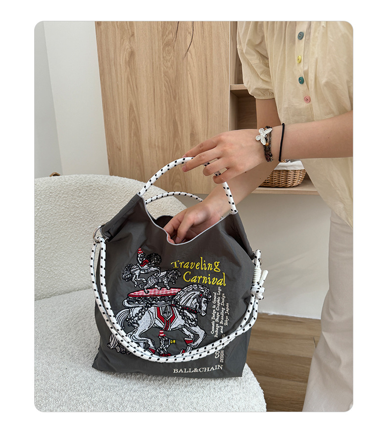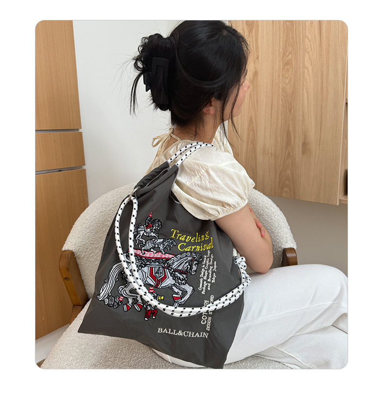 봄 신작 일본 자수 볼 체인 친환경 가방 여성용 가방 쇼핑 크로스 바디 백 숄더 캔버스 가방 핸드백