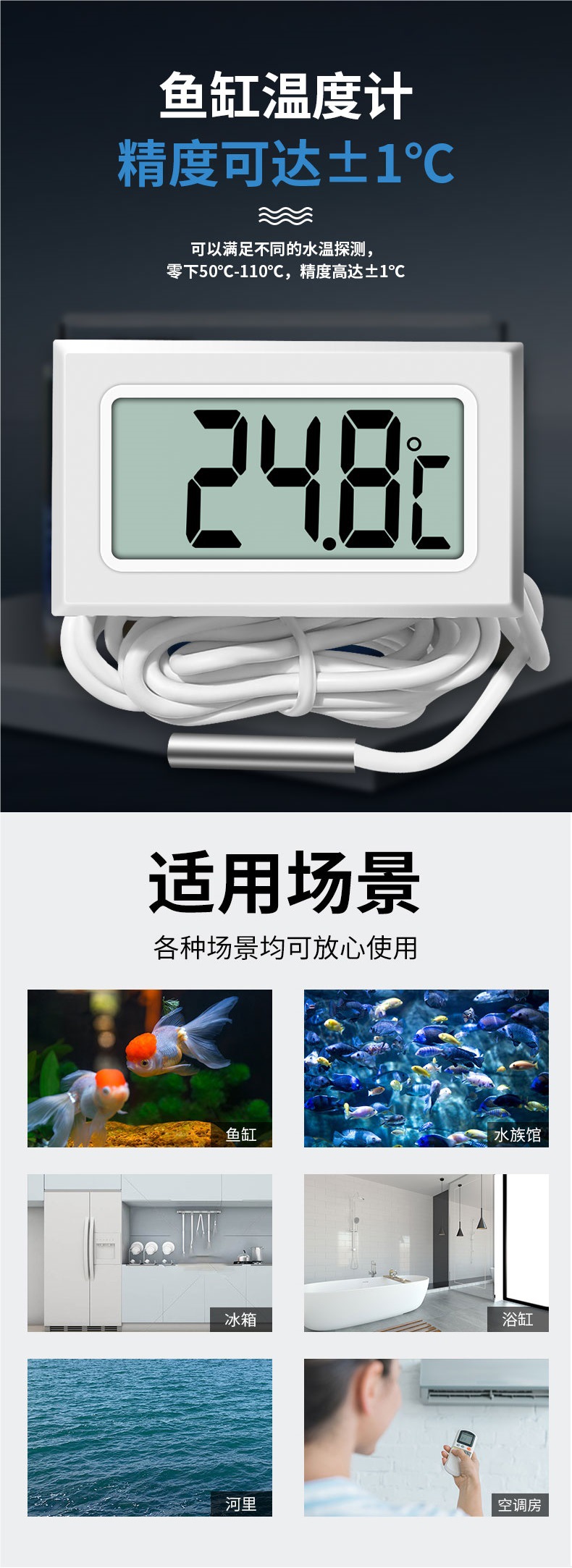 제조업체 헤드밴드 프로브 디지털 디스플레이 온도계 고정밀 수조 사육 전자 온도 센서 냉장고 온도계스토어 가기