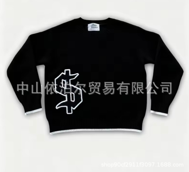 국경 간 유럽과 미국의 스트리트 캐주얼 루즈한 긴팔 탑 가을, 겨울 풀오버 라운드 넥 $ 남성 및 여성 니트 스웨터스토어 가기