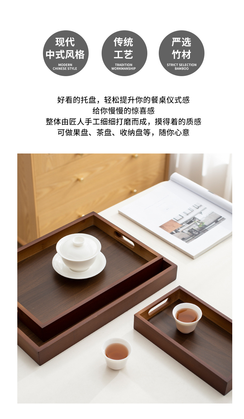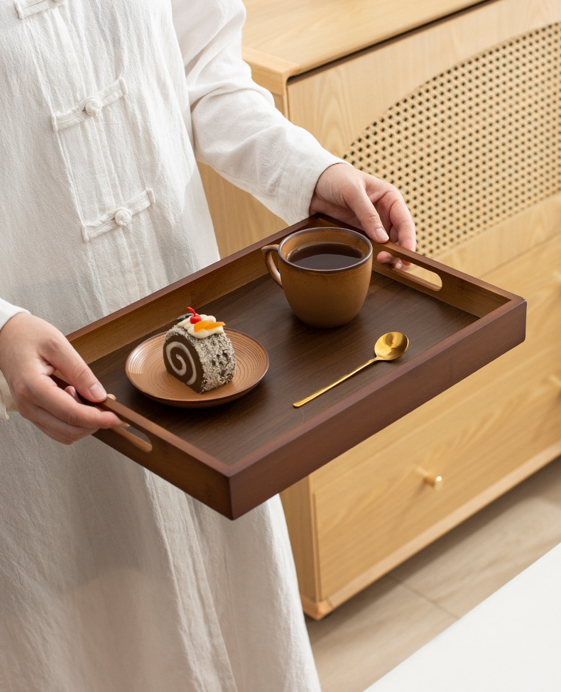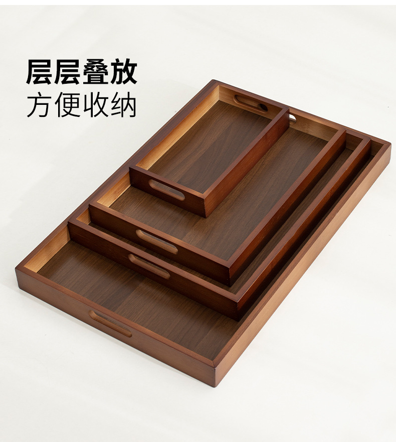 직사각형 트레이 대나무 나무 아침 식사 접시 검정색 차용품 상업용 디저트 접시 애프터눈 티 나무 식기스토어 가기