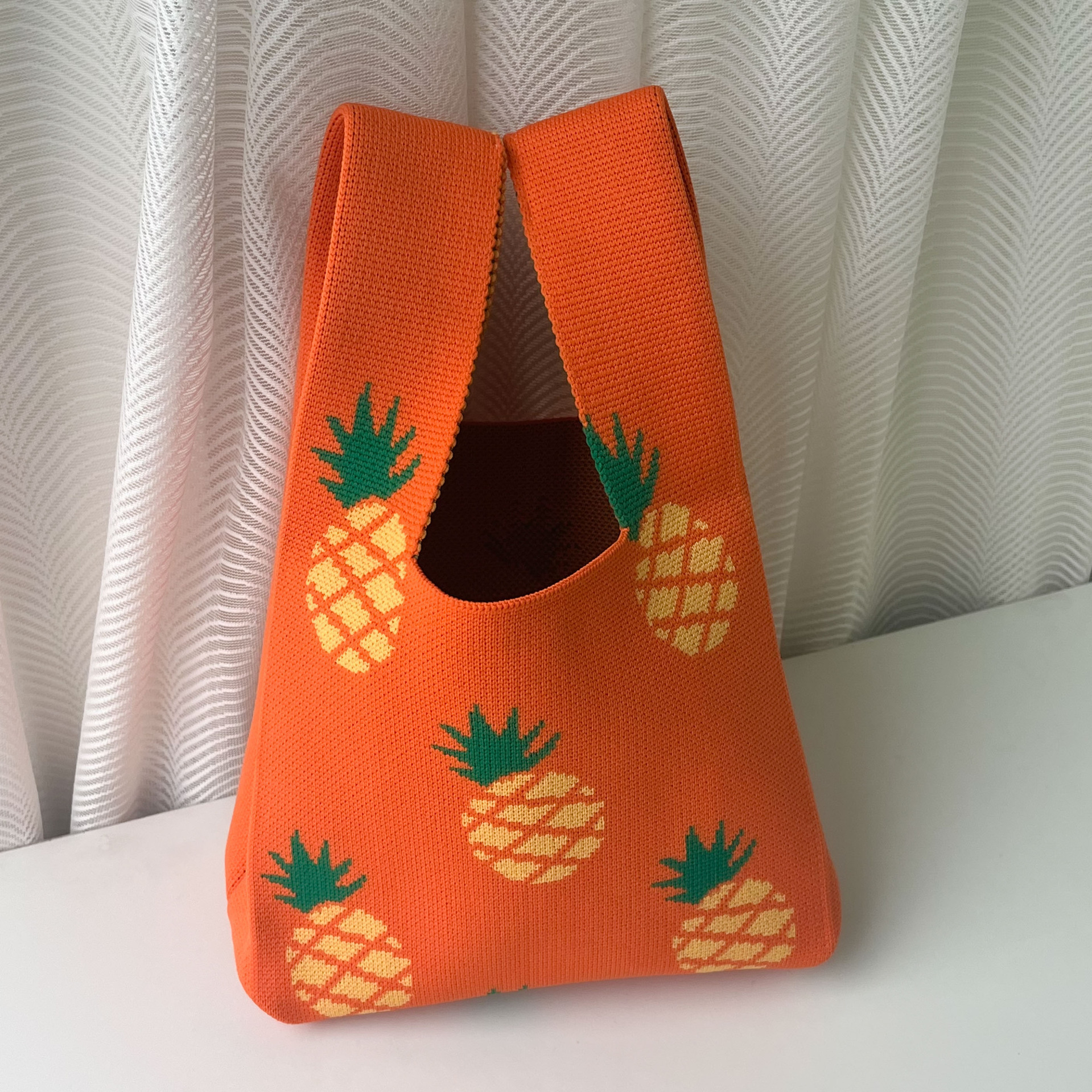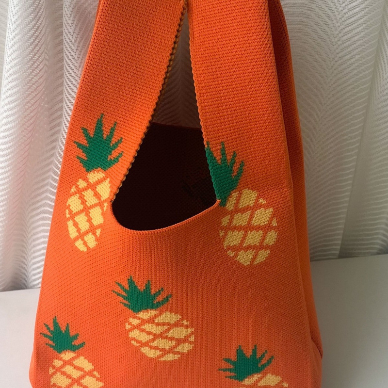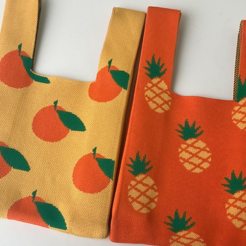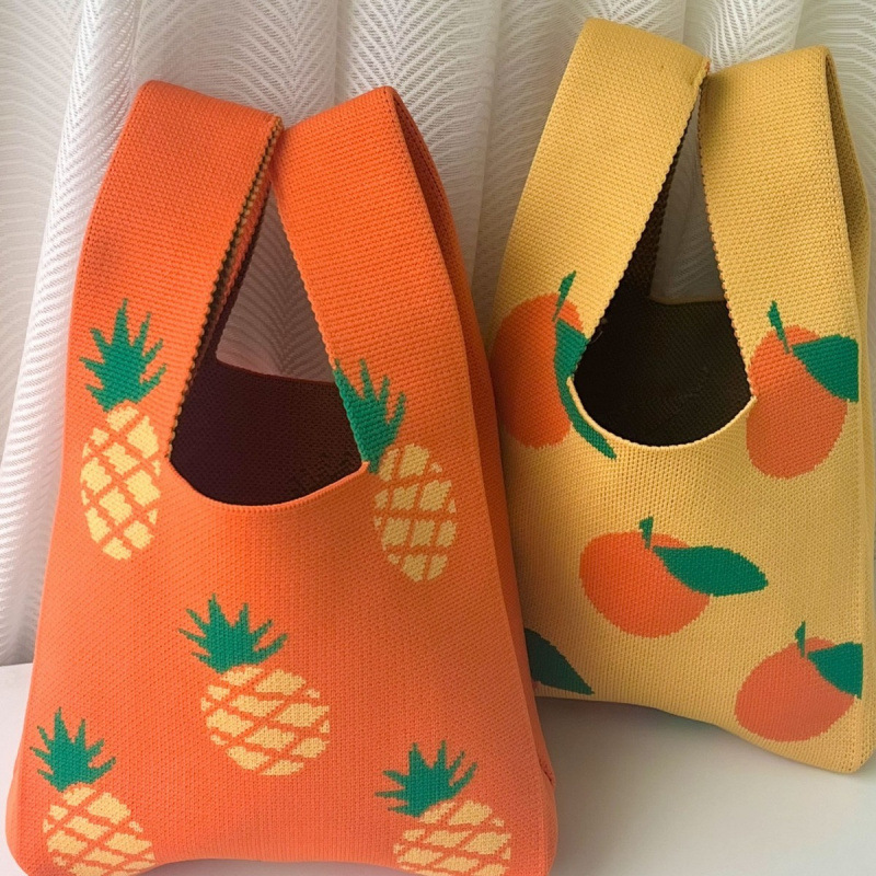 Ins 스타일 니트 만화 귀여운 과일 가방 휴대용 버킷 토트 간단한 숙녀 가방 대용량 짠 가방