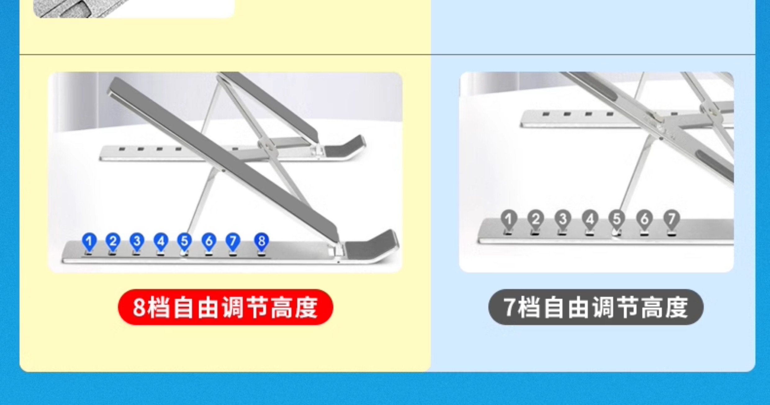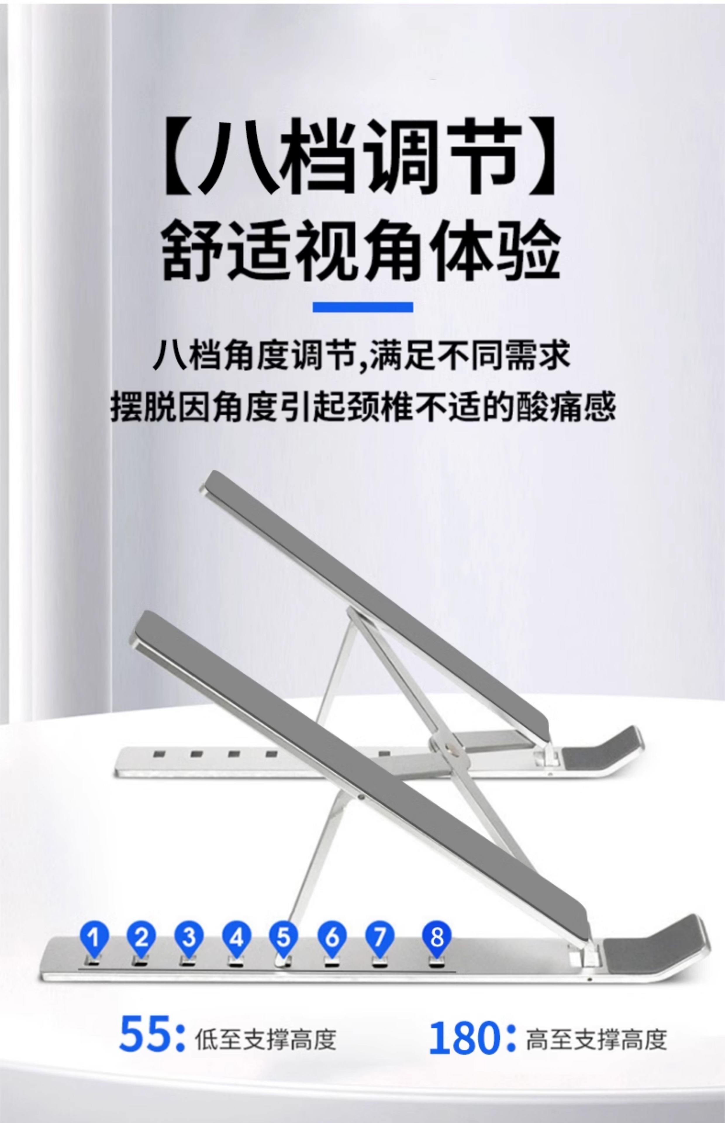 • [Jindian 업그레이드된 새 모델] 알루미늄 합금 브래킷 * 실버 + 8단계 조정 ★ 긁힘 방지 및 컴퓨터에 충격 없음 ★ 접이식 및 휴대 가능 ★ 무료 보관 가방