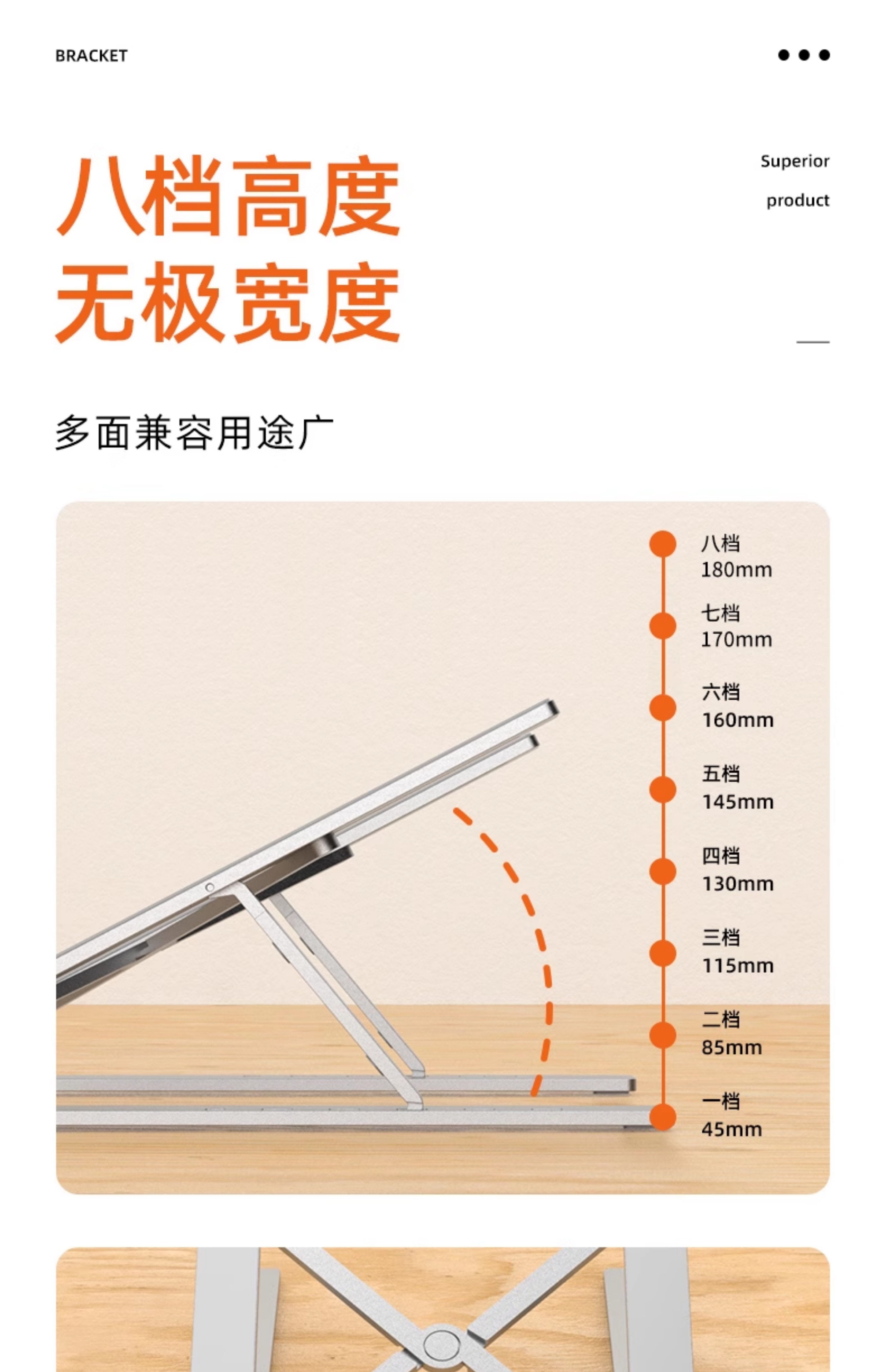 • [Jindian 업그레이드된 새 모델] 알루미늄 합금 브래킷 * 검정색 + 8단계 조정 ★ 긁힘 방지 및 컴퓨터에 충격 없음 ★ 접이식 및 휴대 가능 ★ 무료 보관 가방