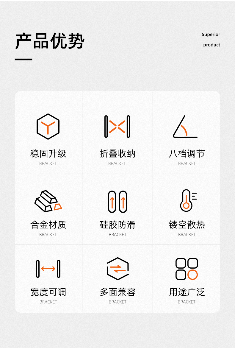 • [플랫 풀 실리콘 신형 모델] 블랙* 알루미늄 합금 브래킷 + 8단계 조절 ★ 긁힘 방지 및 컴퓨터에 충격 없음 ★ 접이식 및 휴대 가능 ★ 무료 보관 가방