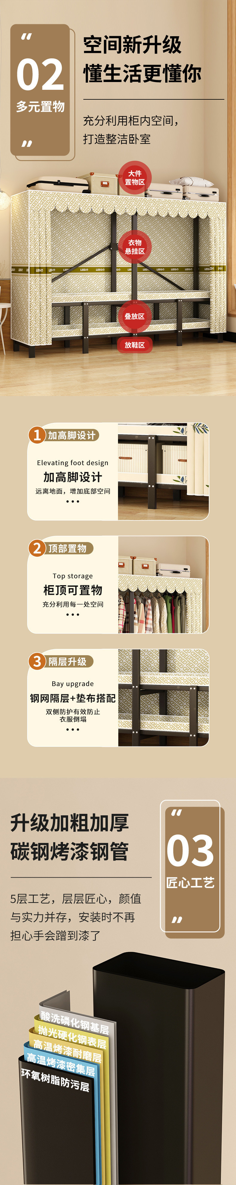 옷장 가정용 침실 천 옷장 강철 파이프 두꺼운 강화 옷장 임대 주택 간단한 옷장스토어 가기