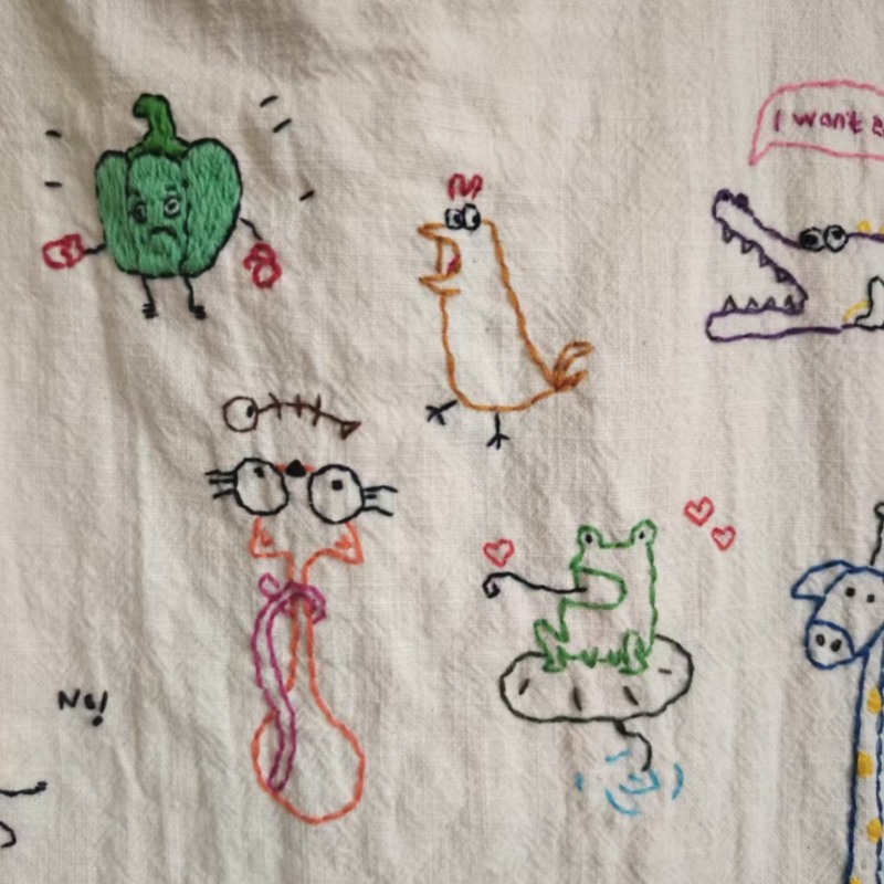 2025 새로운 일본식 낙서 자수 캔버스 가방 문학적이고 다재다능한 편안한 숄더백 통근 캐주얼 핸드백