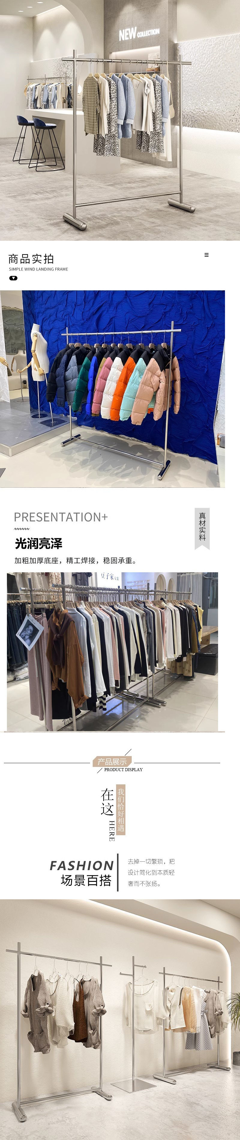 의류 매장 디스플레이 랙 스테인레스 스틸 간단한 바닥 스탠딩 아일랜드 옷 걸이 남성 및 여성 의류 매장 선반 디스플레이 소품스토어 가기