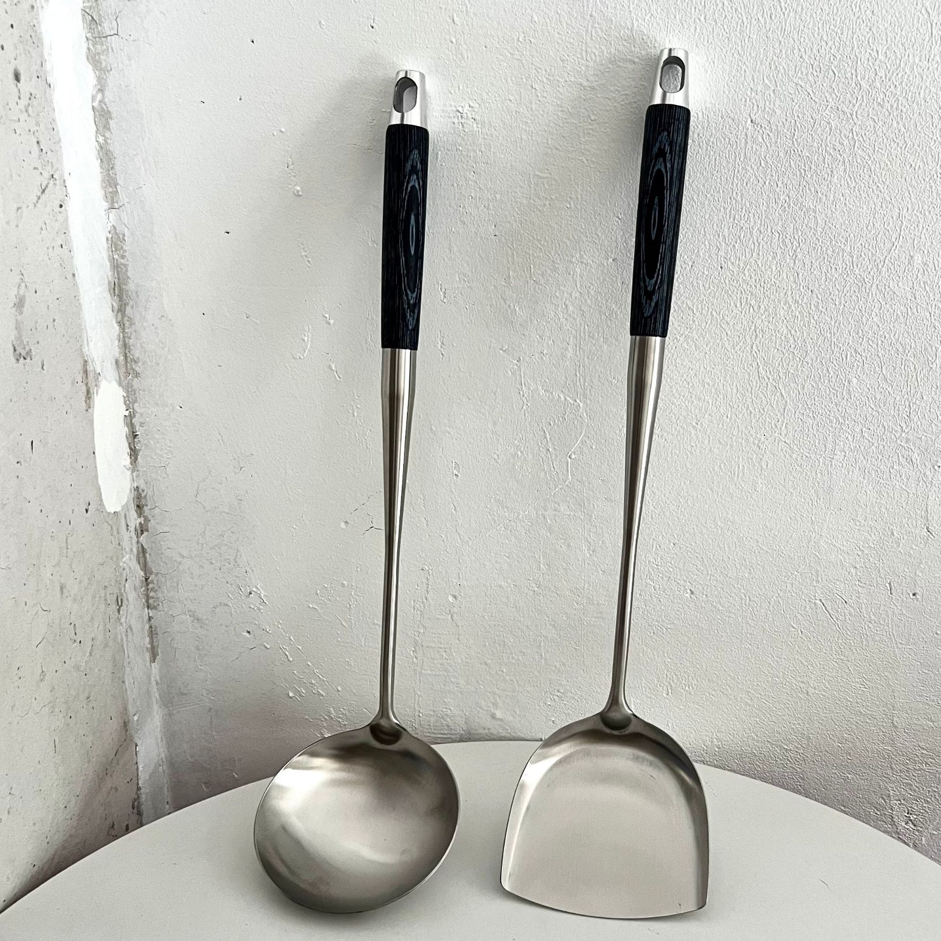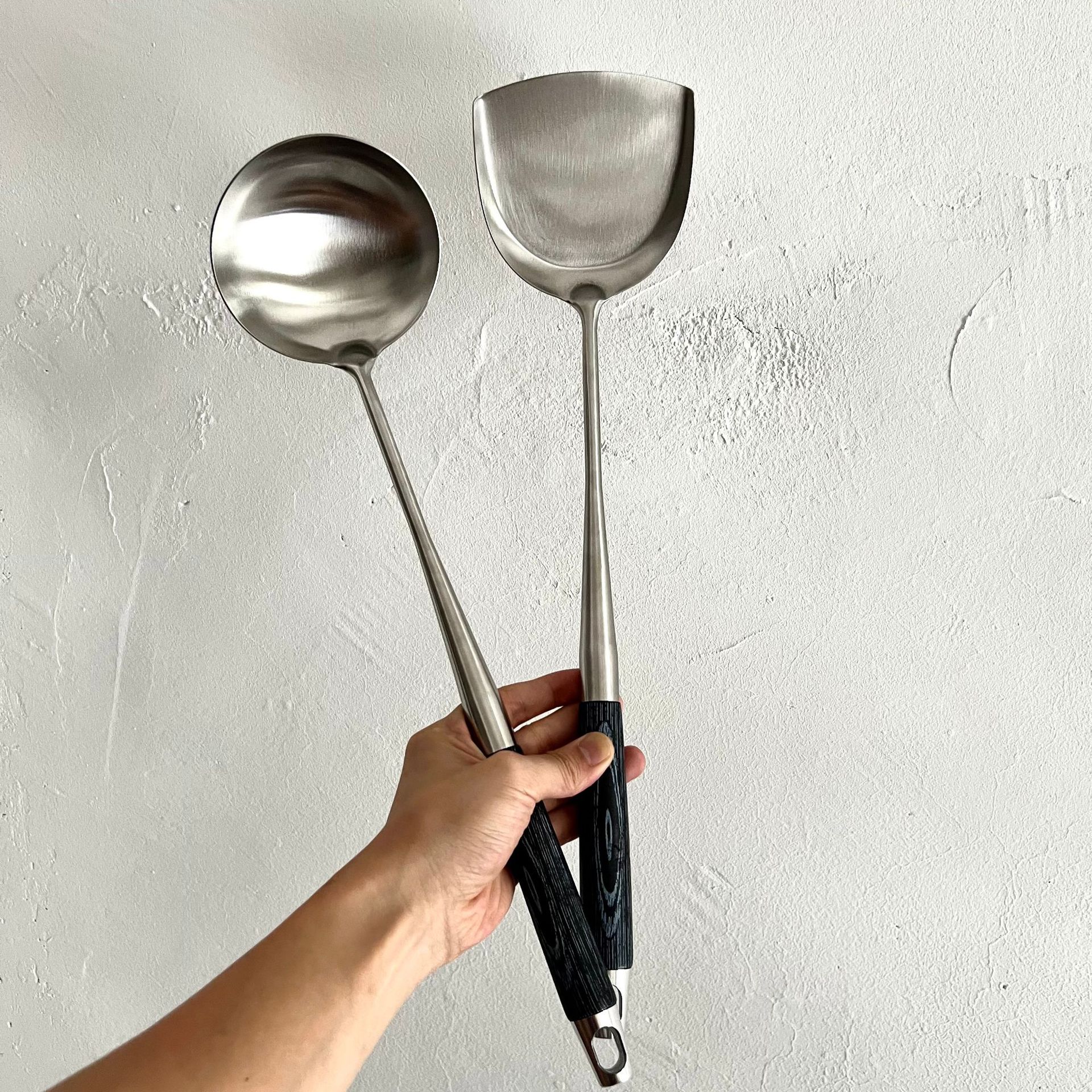 스테인레스 스틸 주걱, 냄비 스푼, 요리용 주걱, 가정용 주방 확장형 나무 손잡이 프라이팬 스푼, 요리사 전용 프라이팬 주걱스토어 가기