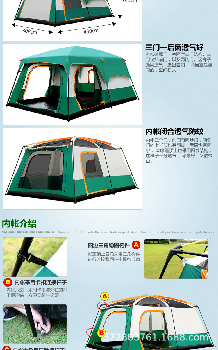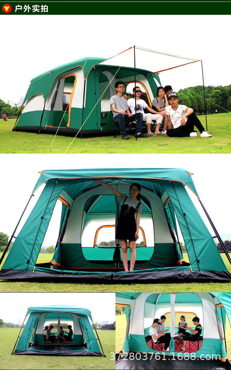 공장 도매 야외 캠핑 텐트 2실 1홀 5-8-12인용 자외선 차단 휴대용 대형 텐트 국경 간 핫 세일스토어 가기