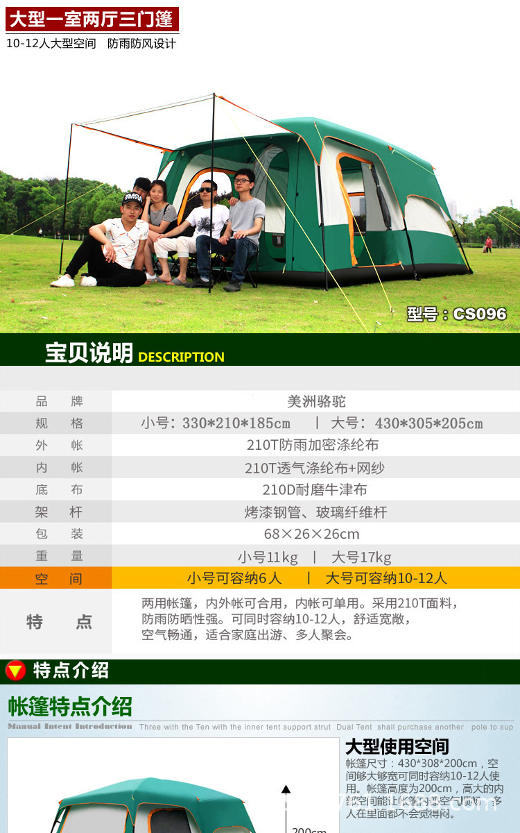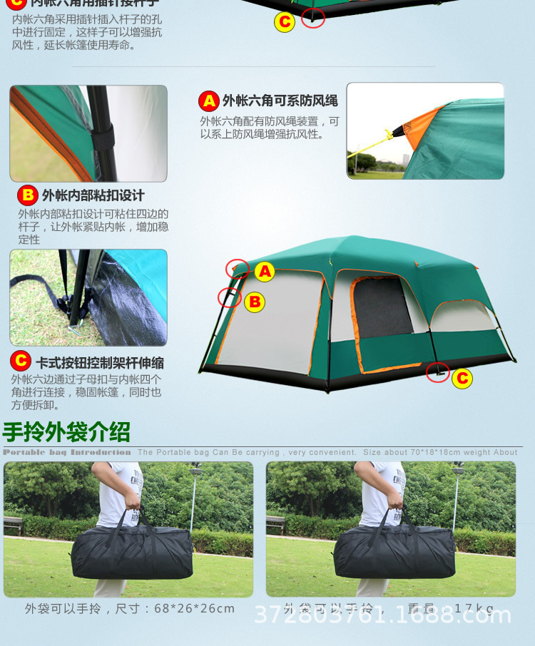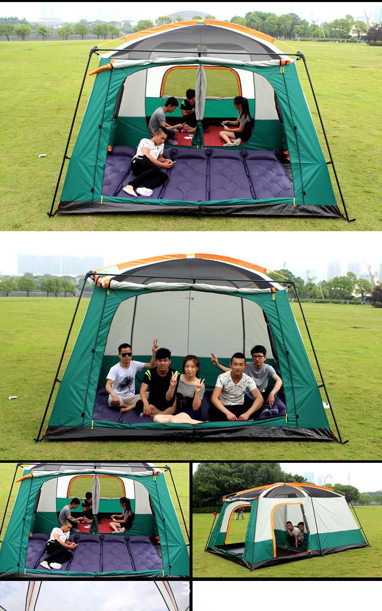 공장 도매 야외 캠핑 텐트 2실 1홀 5-8-12인용 자외선 차단 휴대용 대형 텐트 국경 간 핫 세일
