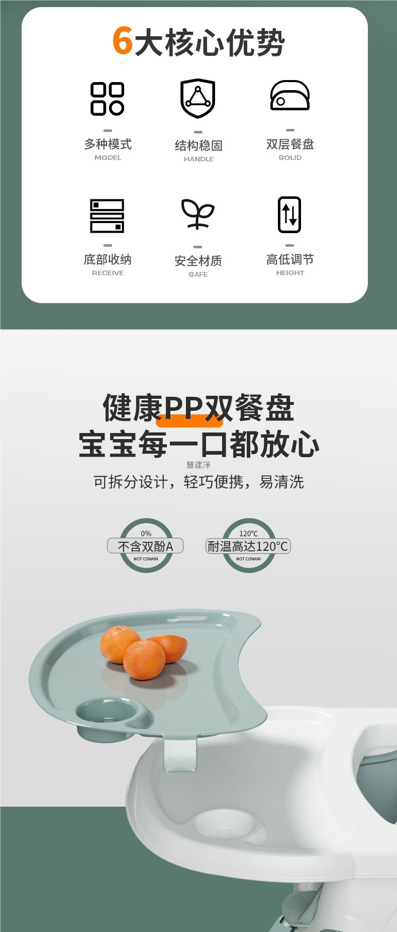 식사용 아기 식탁 의자, 접이식 및 휴대용 가정용 아기 학습 의자, 어린이 다기능 식탁 및 의자 좌석