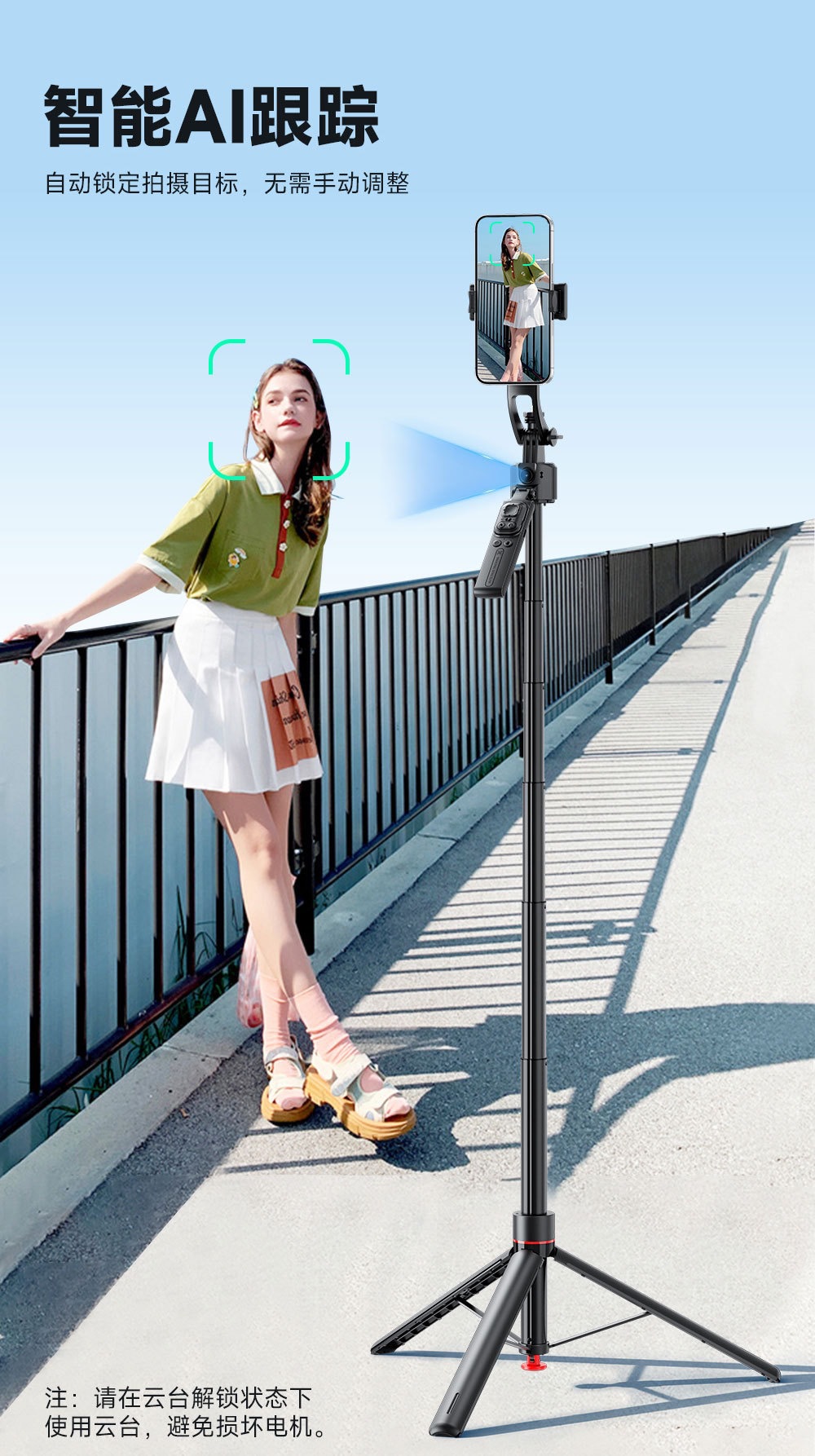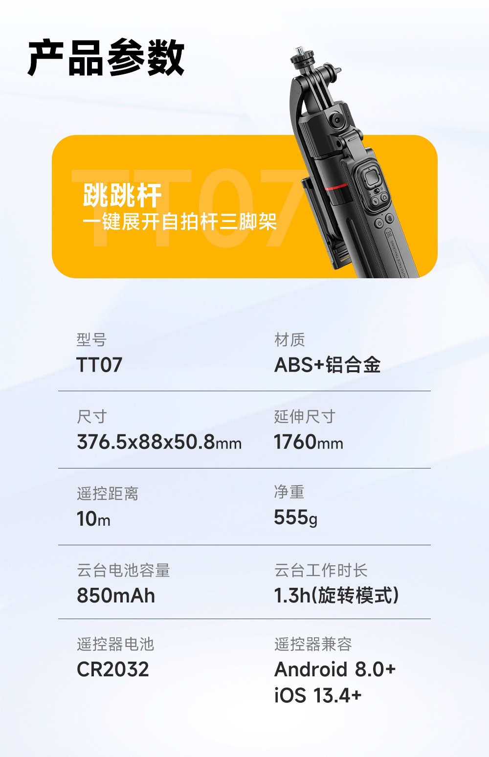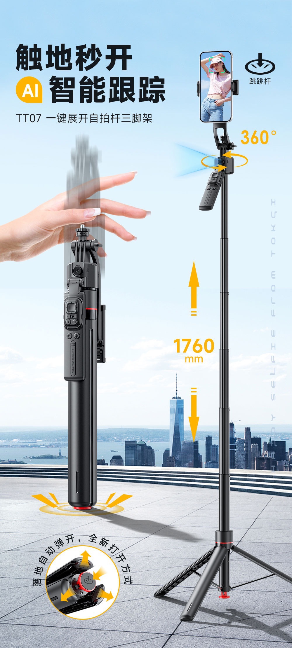 • 【TT07】점핑 폴 1.73m + AI 지능형 추적 + 탈착식 휴대폰 클립 + 1/4 인터페이스 + 알루미늄 합금 튜브