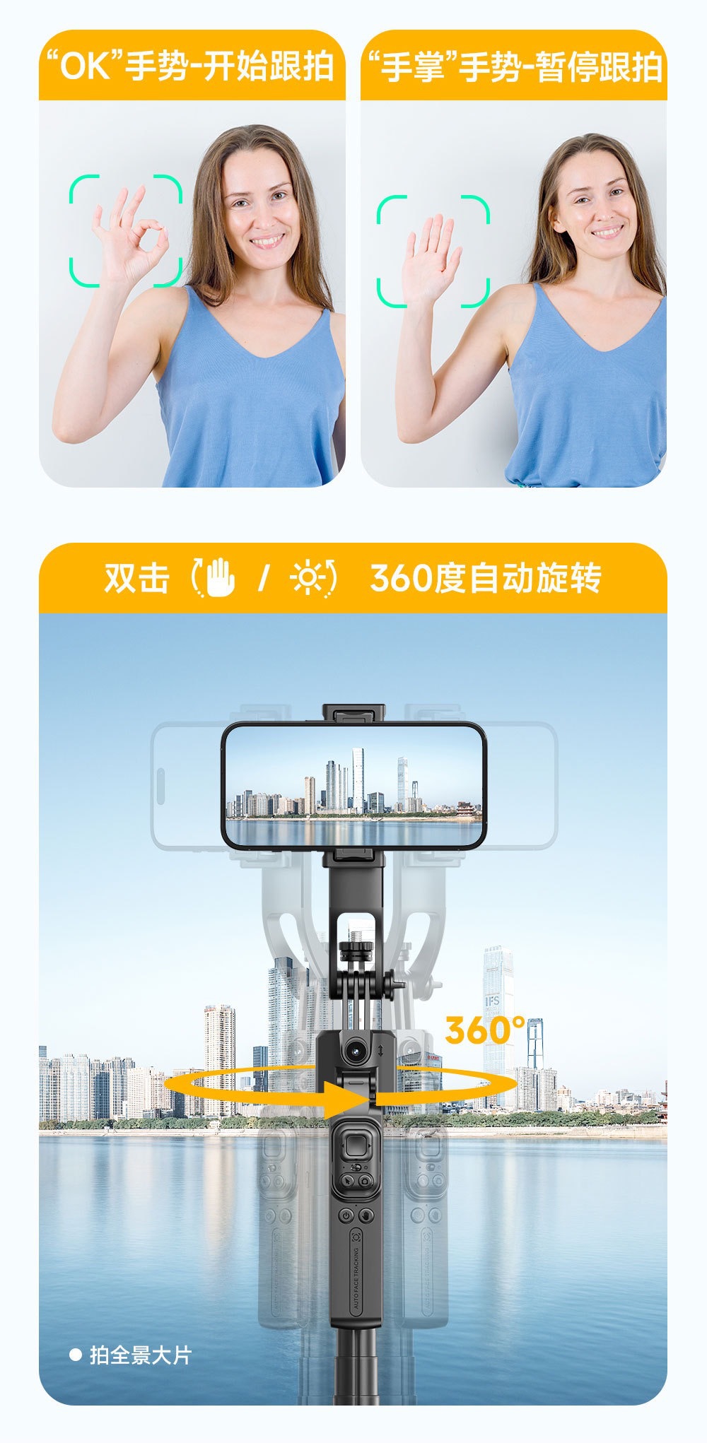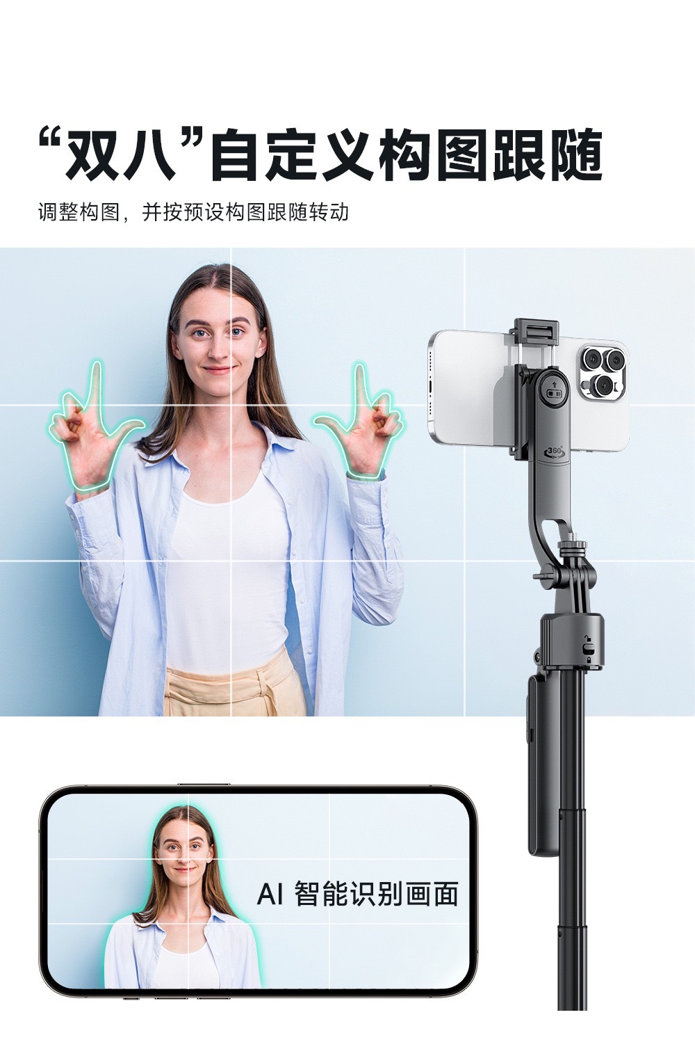 TT07 점프 폴 짐벌 및 촬영 도구, 짐벌 폴 셀카 스마트 AI 얼굴 추적 삼각대 휴대폰 홀더스토어 가기