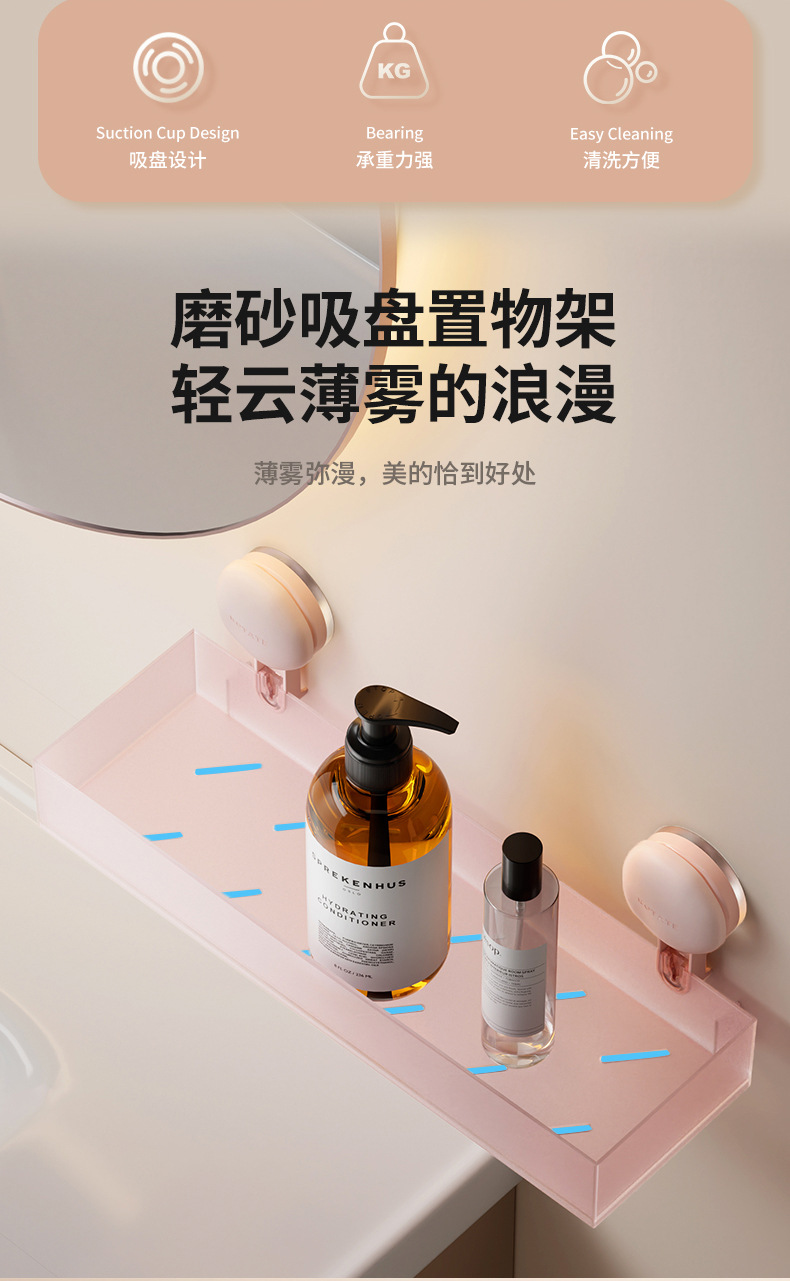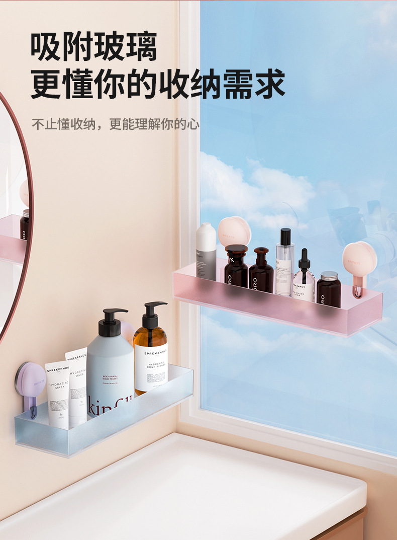 • 흡착컵 욕실 수납선반 [프로스트 파우더]