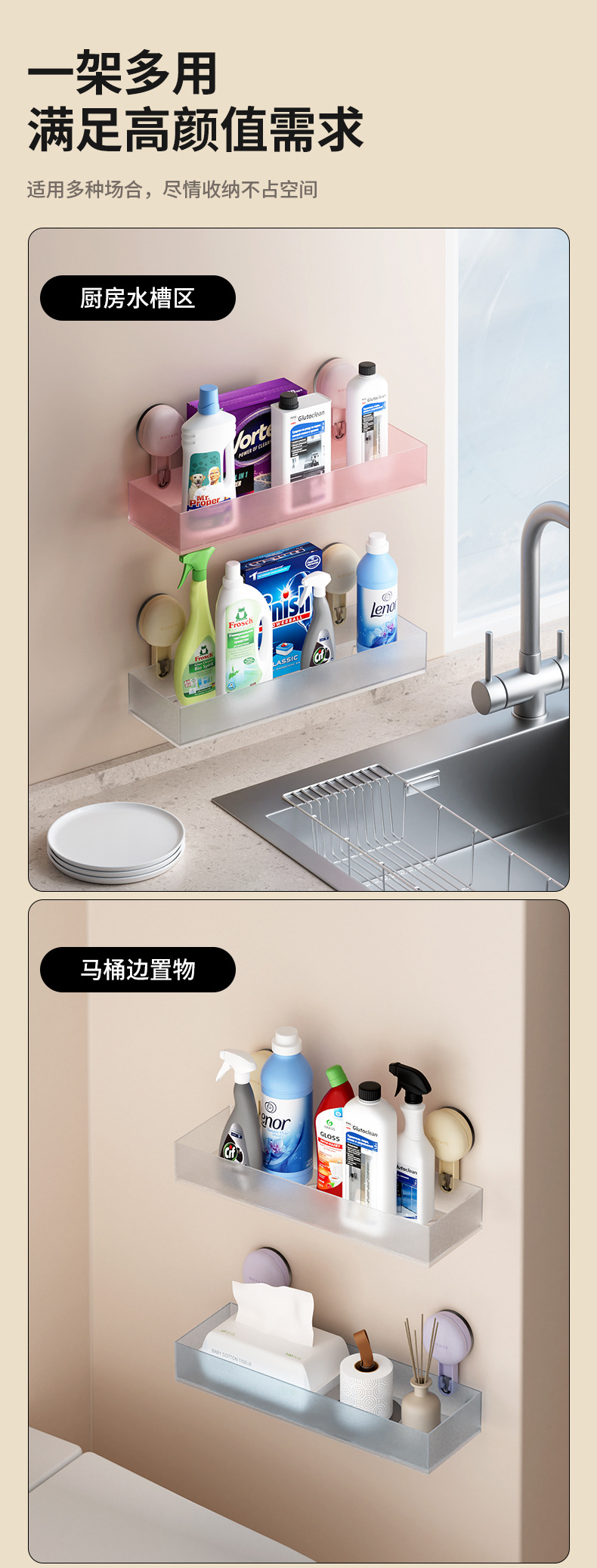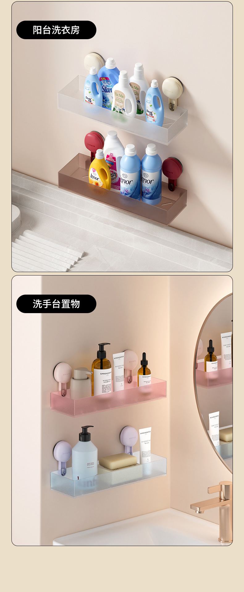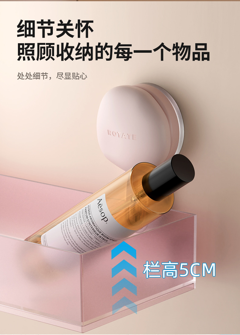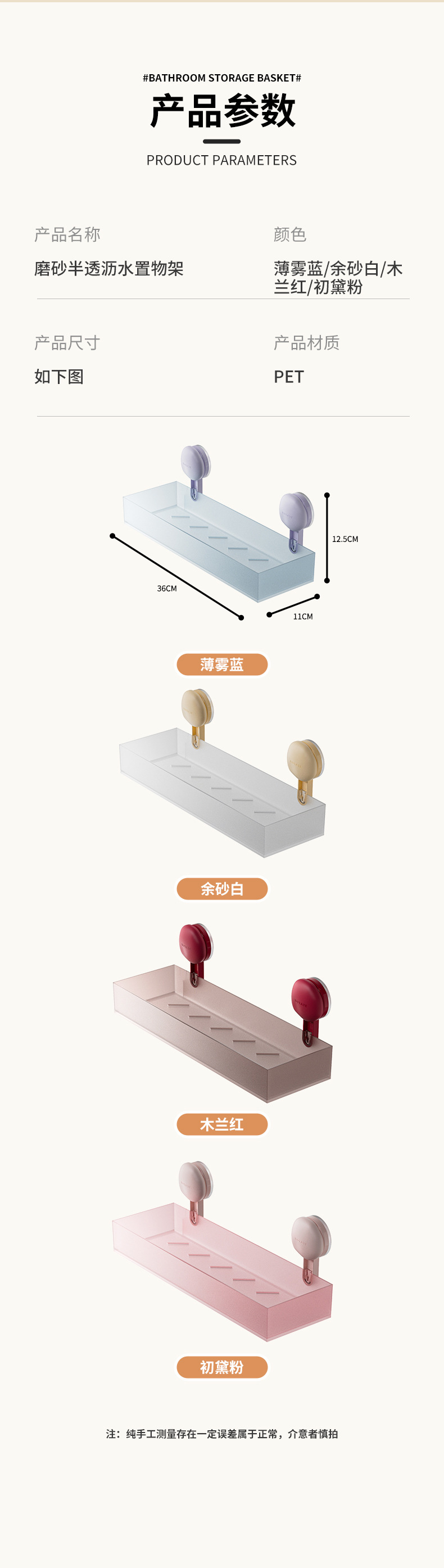 마카롱 반투명 수납 선반 욕실 펀치 프리 벽걸이 흡입 컵 수납 선반 욕실 싱크대 수납 상자